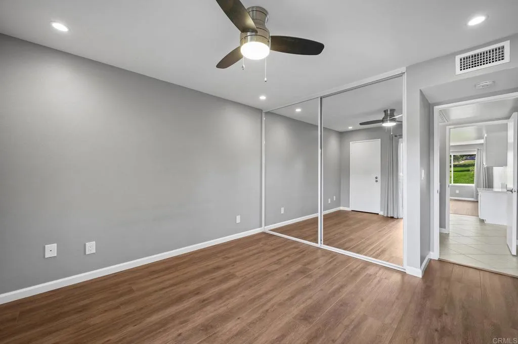 Turn-key, Highly Updated 1 bedroom/1 bath home in North Escondido. Expansive views of the Boulder Oaks Golf Course with lush grounds. This comfortable home features luxury Vinyl plank flooring throughout, upgraded open kitchen with Quartz countertops, bar seating and stainless steel appliances. Dual Pane windows and sliding door, Google Nest Smart Thermostat and newer paint. First floor unit is accessible from patio and front entry. Patios in front and back of the home to enjoy the open views. Assigned parking space by unit and ample overflow parking. Shopping, restaurants and freeway access nearby. Hidden Meadows is a beautiful community with rolling hills, hiking and beautiful views. Use of Hidden Meadows Community Pool and Tennis Courts for $396/year.