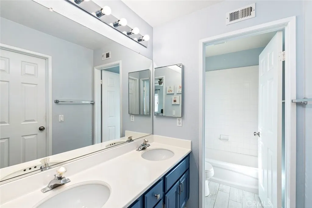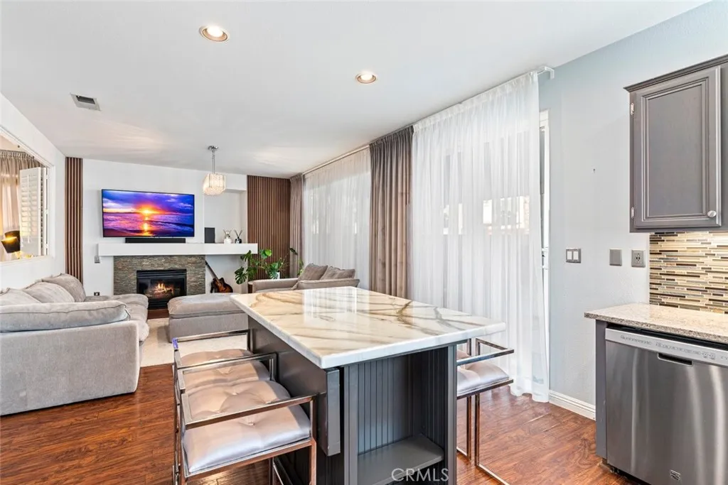 This beautifully updated turnkey home is the largest floor plan in the gated community of Treasures at Castle Creek and sits on one of the largest, meticulously maintained lots with exceptional curb appeal. A striking 25-year-old pineapple palm tree welcomes you into the front courtyard, leading to an open, light-filled layout with wood flooring throughout, a beautiful modern fireplace, and elegant finishes. A rare three-car-wide driveway—uncommon in this community—adds to the home’s appeal. The updated kitchen showcases custom-stained cabinetry, a 5-burner gas range, and a glass tile backsplash. The private Primary Suite features a walk-in closet, a spa-like bath with a soaking tub, and serene mountain and backyard views. Upstairs includes spacious secondary bedrooms, one of which also offers a walk-in closet, a Jack-and-Jill bath, and a versatile bonus room ideal for a home gym or bedroom. The main level also offers an additional room with double doors, ideal for use as a private office or bedroom, along with a full bath and a laundry room with additional storage. The tropical backyard is perfect for entertaining or relaxing, featuring synthetic turf, a large covered patio, a newer high-end aluminum fence, and a private spa with pergola. Additional highlights include a Tesla EV charger and solar. Some furnishings may be included in the sale and reflected in the listing price, subject to buyer and seller agreement. Community amenities include a pool and spa, tennis/pickleball courts, playgrounds, and access to the Castle Creek Golf Course.