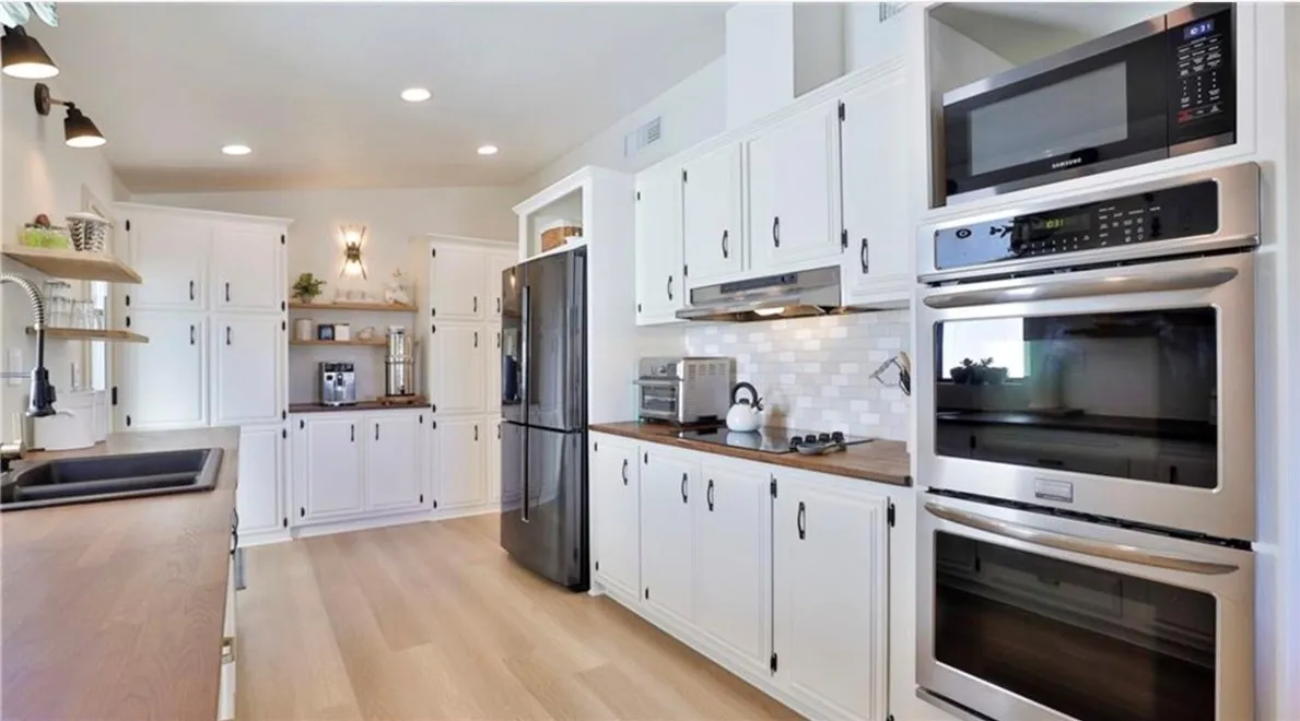 GORGEOUS CORNER LOT + 2 CAR GARAGE home in the 55+ community of Golf Knolls. A rare and incredible find! Permanent Foundation and parking for 6 cars. You will love the almost maintenance-free over-sized lot! Enjoy the rosy sunset views, and lounge around on your two covered patios, outdoor eating area, and private Zen garden! The exterior of the home has been transformed with faux grass in the front yard, fresh landscaping, retaining wall added and several security motion lights. Now, let's talk about the inside of your new home! Luxury vinyl plank flooring, new baseboards, wood paneled doors, vaulted ceilings, showcase owners attention to detail. Enormous living room, with motorized premium rolling fabric blinds with valances installed. You don't even have to get off the couch to close them! Modern sliding barn door opens up to the very versatile office/3rd bedroom. Indoor laundry room with tons of cabinet storage. Spacious and elegant kitchen features floating shelves, wood countertops, double ovens and stainless appliances. Custom lighting includes sconces, vanity, pendant and ceiling lighting. Guest bathroom has upgraded vanity and shower has been reglazed. Newer electrical outlets and switches, many with USB port connections. This is truly a must-see for you and your clients to appreciate. This neighborhood is known for its low taxes and HOA fees. The community pools and clubhouses elevate the relaxed lifestyle here, and special events are always on the calendar.