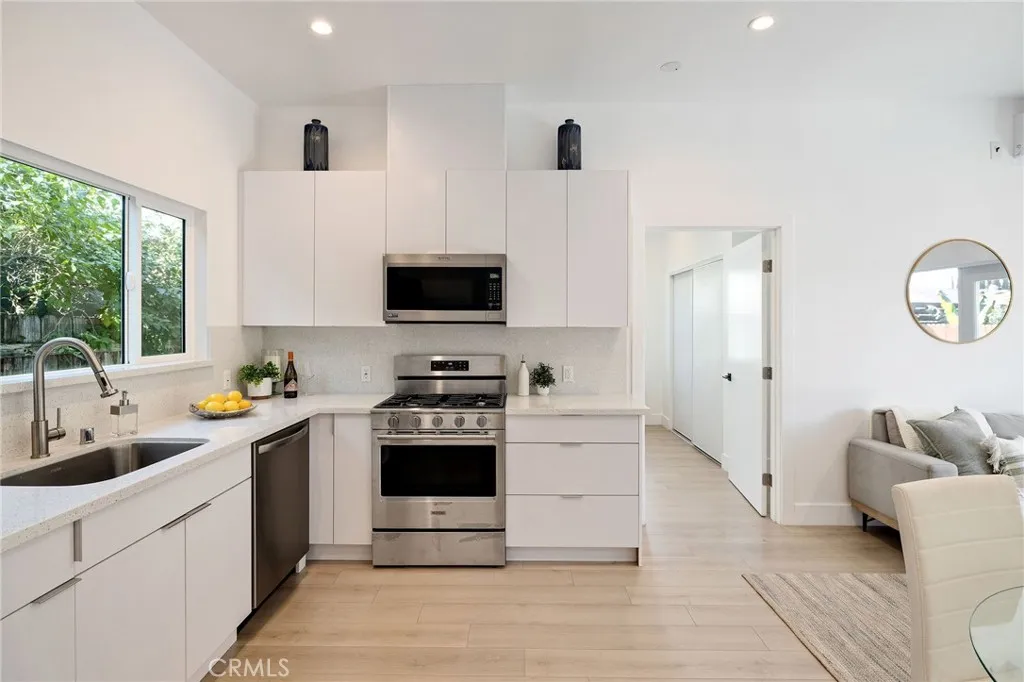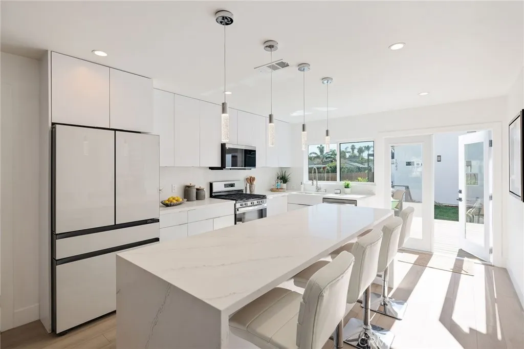 Welcome to this thoughtfully reimagined property offering exceptional flexibility and style, featuring a fully remodeled 3-bed, 2-bath main home and a brand-new 2-bed, 2-bath ADU with a separate address. The front home was taken down to the studs, extended, and rebuilt with smart appliances, recessed lighting, waterproof laminate plank flooring, Nest thermostats, central air, fresh interior and exterior paint, and a spacious kitchen with a quartz countertop island seating up to five plus room for dining. The primary suite opens to a stunning Trex deck and private backyard filled with new lawn, plants, pavers, and vinyl fencing, while a mature magnolia tree enhances curb appeal. A paved side walkway leads to the ADU for privacy, where soaring ceilings, ensuite bedrooms, a full kitchen, laundry hookups, and a private deck reflect no-expense-spared construction. The tandem garage doubles as a potential office or gym with laundry and sink, complemented by a long driveway for extra parking. Walking distance to Old Town Torrance with restaurants, shops, and activities for all ages. With 1,993 total square feet of living space, air conditioning throughout, and endless options to live in one, rent the other, or rent both, this is a rare, turn-key opportunity designed for modern living and income potential.