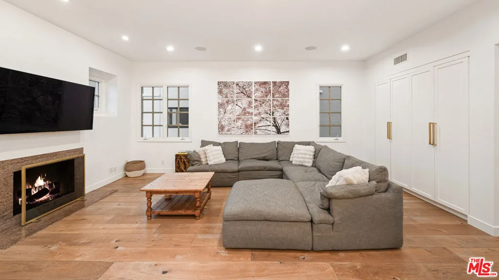 This fully remodeled canal-front residence offers refined coastal living across a thoughtfully designed multi-level layout, completed within the last five years with meticulous craftsmanship, premium finishes, and advanced systems throughout. The bottom level provides added flexibility with a three car garage featuring 220v for electric vehicles and custom built-in storage cabinetry, along with a refined powder room and a private guest suite with en-suite bath, ideal for visitors or multigenerational living. The entry level opens to a striking sun-lit living room defined by wide-plank DuChteau hardwood flooring, elegant brass railings and a Calais chandelier. A wood burning/gas fireplace and custom built-in bookshelves anchor the space, while double French doors lead to an expansive canal-facing patio. A privacy wall frames tranquil water views on the largest part of the Canals, complemented by a built-in stainless steel natural gas grill, creating an ideal setting for entertaining or relaxing outdoors. Ascending one level, a Milan chandelier presides over the large dining room which flows seamlessly into the family room, highlighted by high ceilings and a second fireplace. The adjacent chef's kitchen is both functional and refined, featuring premium Vadara quartz countertops, professional grade Wolf and Sub-Zero appliances, custom designed cabinetry, porcelain farmhouse sink and high-end designer fixtures and hardware for a modern, elevated finish. The next level above, the grand primary suite offers a sun filled tranquil retreat featuring a third fireplace, a Jacqueline chandelier, custom curtains, and dual balconies, ideal for enjoying morning sun and coastal breezes. The spa inspired en-suite bath features a multifunction bidet, walk-in shower, jacuzzi tub beneath a skylight, dual LED-lit vanities, custom hardware, Vadara countertops and Italian marble tile. A generous walk-in closet is connected for ease and function. Down the hall, a dedicated laundry area with linen storage adds convenience, alongside two additional guest suites and a beautifully appointed full hallway bath. All bathrooms throughout are finished with high-end fixtures and glass enclosed showers. Crowning the home is an exceptional rooftop triple layer concrete deck designed for elevated relaxation and entertaining. This spa inspired retreat includes an infrared sauna, hot tub, full bathroom, and lounge area. Take in the mountain and peak-a-boo ocean views while enjoying your private escape above it all. Interior finishes throughout the home feature fresh Benjamin Moore interior paint, enhanced insulation for improved comfort and energy efficiency, and a Lennox dual-zone HVAC system ensure year round livability. Integrated technology includes Ring security cameras, a full alarm system, and a five zone Bluetooth Sonos-enabled audio system with twelve in-ceiling speakers. Exterior and interior doors throughout the house are accented with distinctive gold hardware. Located in the iconic Silver Strand, with 24/7 security patrols, across the street from one of best beaches in the city, this rare luxury home blends architectural sophistication, privacy, and effortless indoor-outdoor flow, crafted for those who appreciate thoughtful design at every level.