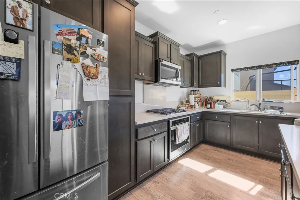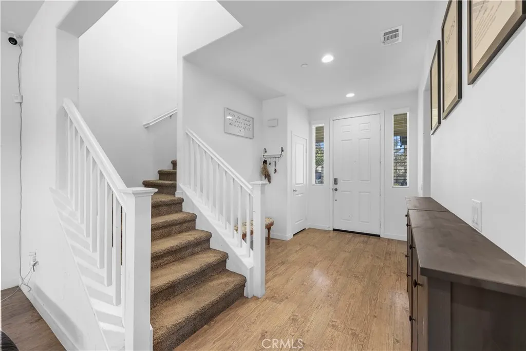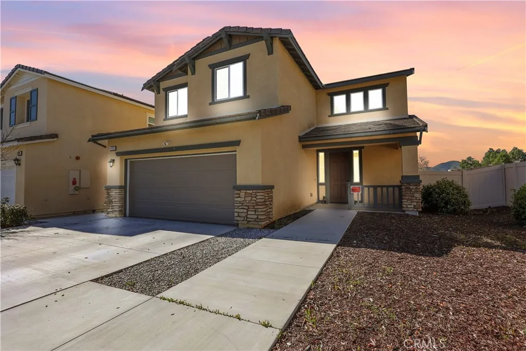 PRICE IMPROVEMENT — VA ASSUMABLE OPPORTUNITY AVAILABLE Beautiful 5-bedroom, 3-bath home built in 2020 and located in one of Murrieta’s most desirable neighborhoods. This functional floor plan features a full bedroom and full bathroom downstairs, ideal for guests, multi-generational living, or a home office. The open-concept layout connects the kitchen, dining, and living spaces, creating a comfortable environment for everyday living and entertaining. Upstairs includes spacious secondary bedrooms, a convenient laundry room, and a primary suite with scenic views and a double-vanity bathroom. The backyard is designed for enjoyment with a full-length patio cover spanning nearly the entire backyard, complete with recessed lighting and ceiling fan — perfect for outdoor gatherings year-round. Additional features include leased solar, gutters, a 2-car garage, and close proximity to the I-15 freeway. Located in a highly rated school district with Murrieta Valley High School within walking distance. Seller offering qualified Veterans the opportunity to assume the current VA loan at a favorable interest rate. Schedule your private showing today.