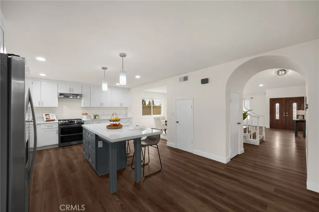 THE LOWEST PRICE PER SQ FT 5 BED WEST OF KRAMER. Beautifully remodeled 5-bedroom home located in a well-established Placentia neighborhood. NOBODY BEHIND YOU! Quietly located at the end of a cul-de-sac. Situated on an oversized lot, has a neighborhood park just behind, the backyard is a ready for anything. The home has 4 bedrooms upstairs and 1 downstairs. 3 full bathrooms. The home features a double-door entry, high ceilings for great lighting, a large new bright kitchen featuring new cabinetry, quartz countertops, and stainless steel appliances and a huge island. upstairs fifth bedroom is big enough to be used as either a bonus room or converted into two bedrooms; the primary suite is expansive--featuring a view of the park, dual walk in closets, oversized shower, dual vanities. The 9,600 square foot lot is large enough to accommodate an attached or detached ADU, a pool and bbq area and also features guava, fig and lemon trees. But wait—there’s more: a new five ton air conditioner/heater, newer water heater, new luxury vinyl flooring throughout, dual pane windows and newly remodeled bathrooms. There is recessed lighting in every room, a new epoxy floor in the garage as well as high ceilings—use cathedral ceilings if they are that high which provide an abundance of natural light. It is only one mile from CSU Fullerton, Downtown Fullerton and the Brea Mall close to top-rated schools, shopping, and restaurants. Alta Vista Country Club and Golf course is just down the street.Best of all: there is no HOA and no Mello Roos. This home is a stunner and could be a heart-breaker if you miss your opportunity to see it.
