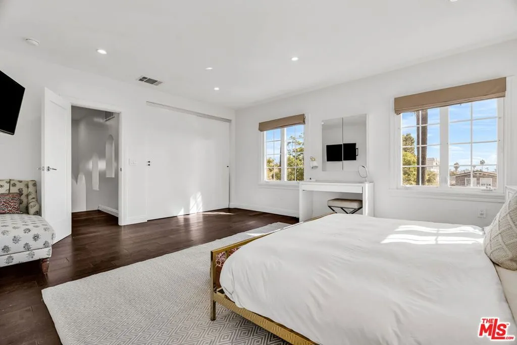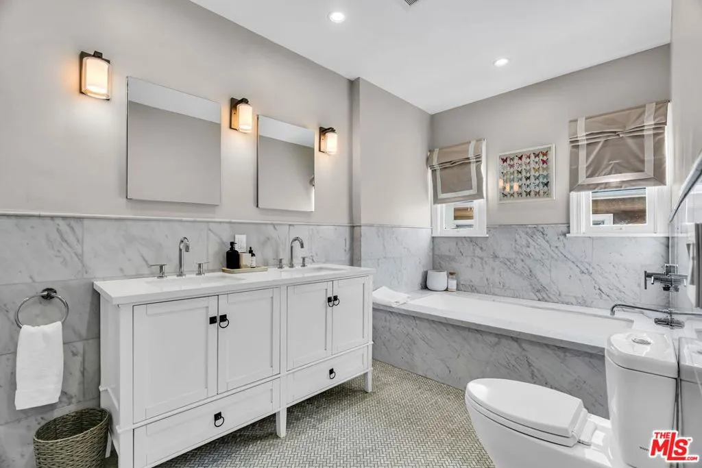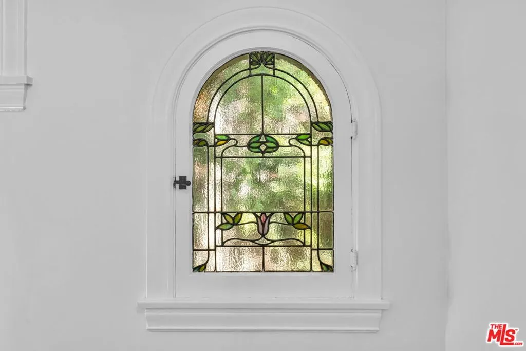 1925 Mediterranean Masterpiece in Windsor Village HPOZ. Experience timeless elegance in this 1925 Mediterranean treasure, ideally situated on a quiet street just one block from Harold Henry Park in the esteemed Windsor Village Historic Preservation Overlay Zone. A designated contributor, this 3,800-square-foot residence blends historic character with modern luxury, featuring exquisite lighting fixtures and recessed lighting throughout. The open kitchen boasts Bosch and LG appliances, double sinks, and custom cabinetry, flowing seamlessly into a bright family room with French doors that open to the lush backyard. Elegant Carrara marble baths and abundant natural light accentuate the home's refined style. The primary suite includes a remarkable walk-in closet, a sitting area, and dual French doors leading to a spacious Saltillo-tiled balcony. At the same time, original stained-glass windows adorn the staircase. A Batchelder fireplace anchors the living room, complemented by custom drapes and window treatments. The laundry room offers oversized LG washer and dryer machines. Outdoors, the private yard is designed for entertaining, with covered patios, a BBQ area, and a sparkling pool and spa. The wonderful guest house (converted garage ADU) provides additional space for guests or creative use. Gated off-street parking and mature privacy hedging complete the property. With four bedrooms, a den/office, and four baths on an 8,500+ square-foot lot, this exceptional home offers the perfect balance of elegance, comfort, and contemporary living in one of Los Angeles's most beloved historic neighborhoods. The home also includes an earthquake-bolted foundation and dual HVAC system for comfort and security. Don't miss this amazing opportunity.