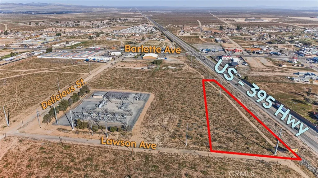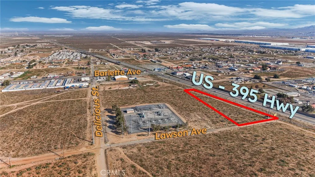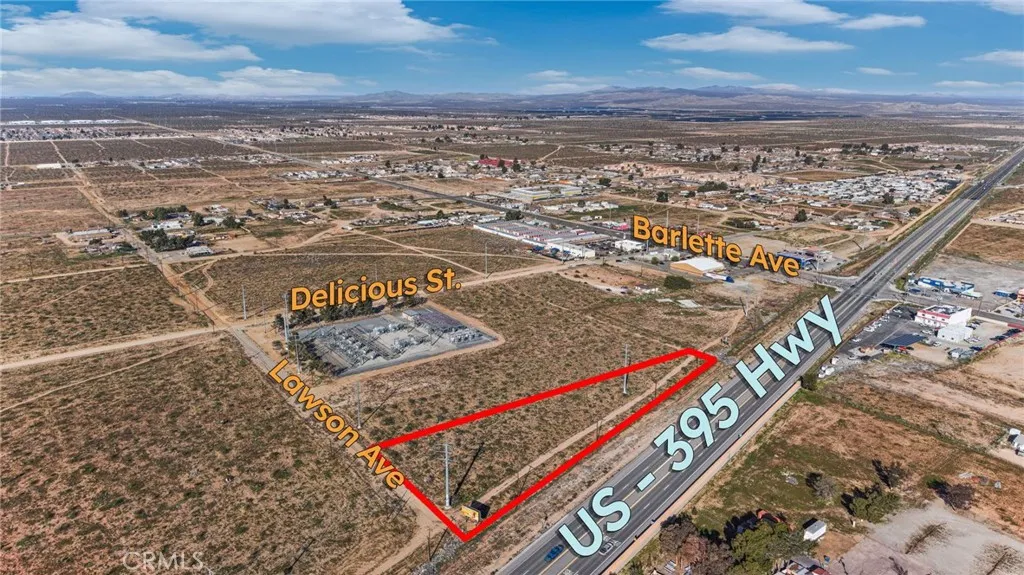 Prime vacant land opportunity in Adelanto, CA, offering excellent potential for commercial, mixed-use, multi-family, or investment development (buyer to verify all zoning, permitted uses, and entitlements). The property is highly visible with strong exposure to Highway 395 traffic and is located near the proposed Caltrans signalized intersection at Lawson Ave and Hwy 395 (buyer to verify status and timing). Adjacent to major utility infrastructure, including Southern California Edison, with water, power, and sewer nearby. Close proximity to the San Bernardino County Sheriff’s Department (Adelanto Station), Adelanto Branch Library, Adelanto City Hall, and a public park, along with surrounding commercial activity, enhances accessibility and appeal. An excellent opportunity for developers or investors seeking visibility, infrastructure access, and growth potential. This parcel is to be sold together with the adjacent parcel APN 0459181630000 to maximize development potential.