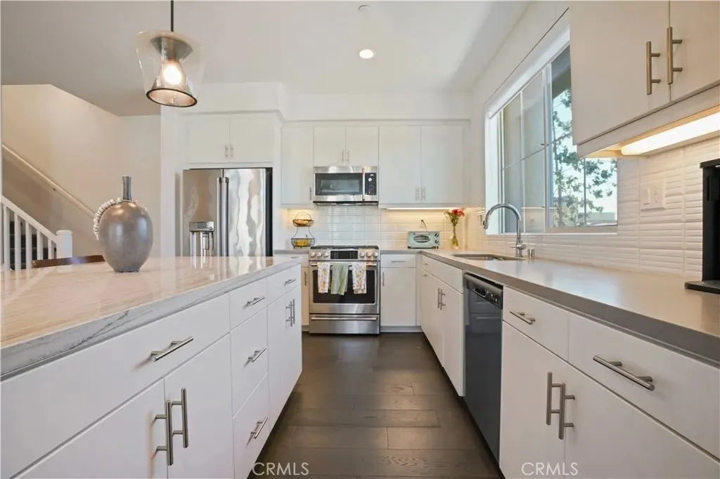 Experience modern living in this beautifully townhome-style condo, where comfort meets sophistication and thoughtful design. Seller motivated, mortgage buydown opportuntiy to buyer. 4 bedroom 2.5 bathroom, Inside, a light-filled open-concept layout creates an inviting, yet refined atmosphere, expansive living and dining areas offer seamless flow for entertaining and everyday living, large windows fill the home with natural light that enhances its warm, upscale feel, and a thoughtfully designed flooring and bedroom carpet. The modern kitchen showcases quartz countertops, an island, stainless steel appliances, upgraded cabinetry, backsplash, and a functional layout ideal for both daily living and hosting, while luxury flooring throughout adds durability and elegance. Bathrooms feature updated vanities, contemporary fixtures, and a clean, walk-in shower, tub, recessed lighting, and upgraded finishes, along with a walk-in closet, plenty of linen closets, and entertainment centers in both first and second-level living rooms, where functionality is key. Every space feels polished yet welcoming, supporting a relaxed and sophisticated lifestyle perfect for quiet evenings, entertaining guests, or working from home in a bright, inspiring environment. A private rooftop space adds a rare and desirable outdoor extension of the home, ideal for enjoying fresh air, relaxing, or gathering with friends to enjoy the fireworks show from Disneyland. The well-maintained community grounds provide a welcoming neighborhood setting with a sense of privacy while still being moments from Downtown Anaheim, the Anaheim Packing House, shopping, dining, entertainment, and convenient freeway access. This residence also offers fully paid solar energy efficiency and long-term savings, EV charging access for modern convenience, an attached two-car garage plus two additional assigned parking spaces, and desirable HOA amenities including BBQ areas, firepit sitting area, greenbelt/pet friendly walk areas, enhancing everyday lifestyle and value in one of Anaheim’s most connected locations. Communter -close to 5, 57 and 91 freeways. Hurry! Make this your beautiful home and start creating unforgettable memories.