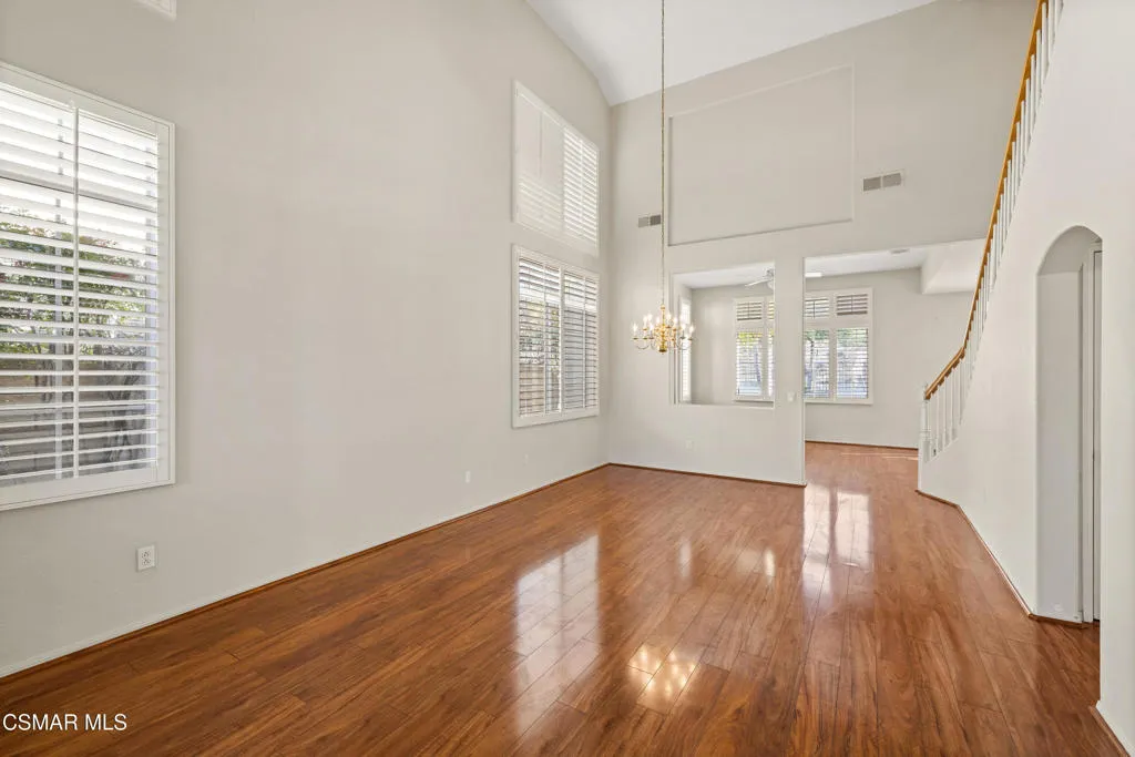 Welcome home to this stunning two-story residence nestled on a quiet street in the highly sought-after Dos Vientos community. Offering 4 bedrooms and 3 bathrooms, this beautifully maintained home combines comfort, functionality, and style. Step inside to soaring vaulted ceilings and an abundance of natural light that create a bright, open atmosphere. The spacious kitchen features ample counter space, abundant cabinetry, a walk-in pantry, and sleek stainless-steel appliances--perfect for everyday living and entertaining. The versatile floor plan includes a convenient downstairs bedroom and full bathroom, ideal for guests or multi-generational living. Enjoy gatherings in the inviting family room with decorative fireplace, as well as the formal living and dining rooms designed for effortless entertaining. Upstairs, the generously sized primary suite offers a private retreat with an en-suite bathroom featuring a large soaking tub, separate shower, and plenty of space to unwind. Two additional bedrooms, a full hall bathroom, and a dedicated laundry room complete the upper level. Step outside to your private backyard backing to open space, providing tranquility and added privacy, along with a spacious side yard. Additional highlights include a 2-car garage, dual-pane windows, recessed lighting, and elegant plantation shutters throughout. Residents enjoy HOA amenities including a pool, spa, and playground, and the home is conveniently located near parks, shopping, hiking trails, and award-winning Sycamore Canyon School K 8. This is an exceptional opportunity to own a beautiful home in one of the area's most desirable neighborhoods. Don't miss it!