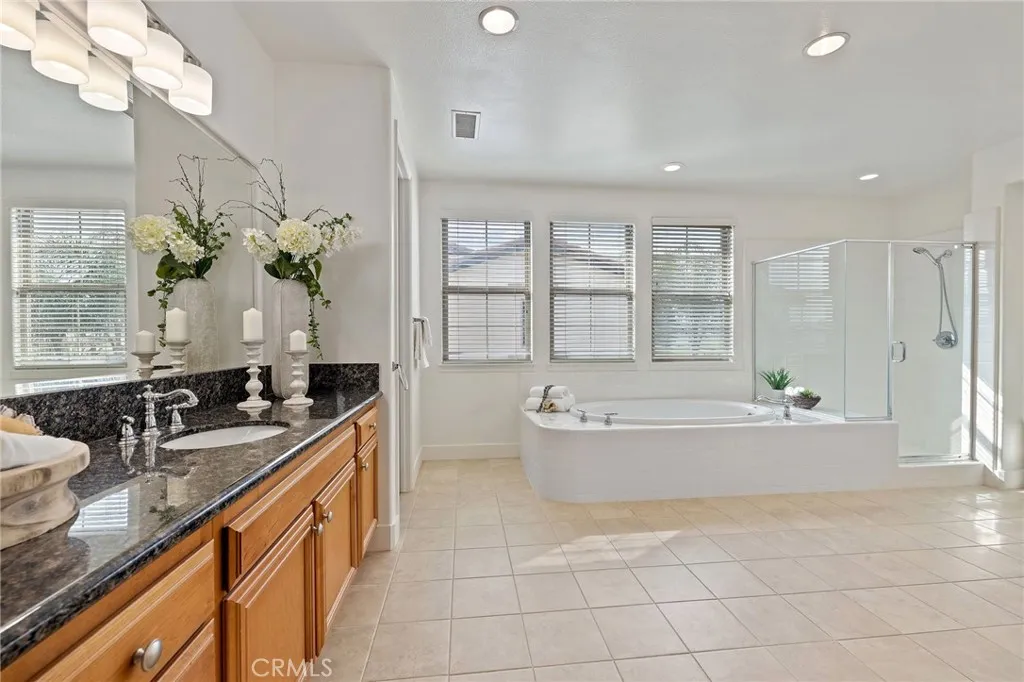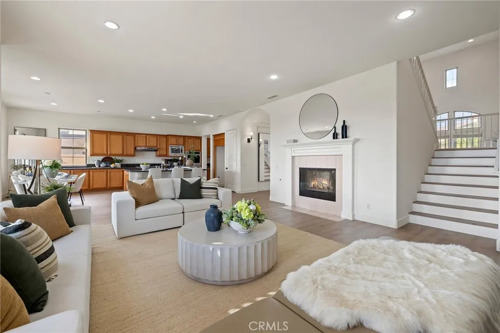 Home features include approximately 4,159 Sq. Ft. of interior living space, 4 Bedrooms plus a Retreat in the Primary Suite, 4.5 Bathrooms, 4 Car Attached Garages, Long Driveway, 2 New A/C Units Installed in 2024, New Interior Paint, New LVP Flooring, 10 Ft. Ceilings Downstairs and 9 Ft. Ceilings Upstairs, a Wheelchair Accessible Layout Downstairs, and No HOA and No Mello-Roos. The main level includes a Formal Living Room, Formal Dining Room, Family Room with Fireplace, and a Spacious Kitchen with Grand Center Island and Breakfast Bar, Granite Countertops, Walk-In Pantry, Butler’s Pantry, and Stainless-Steel Appliances including KitchenAid 5 Burner Cooktop, Whirlpool Range Hood, Whirlpool Microwave, New Samsung Double Oven, and Whirlpool Dishwasher. There is also a Downstairs Bedroom with its own Bathroom and Walk-In Closet, plus a Separate Powder Room for Guests.