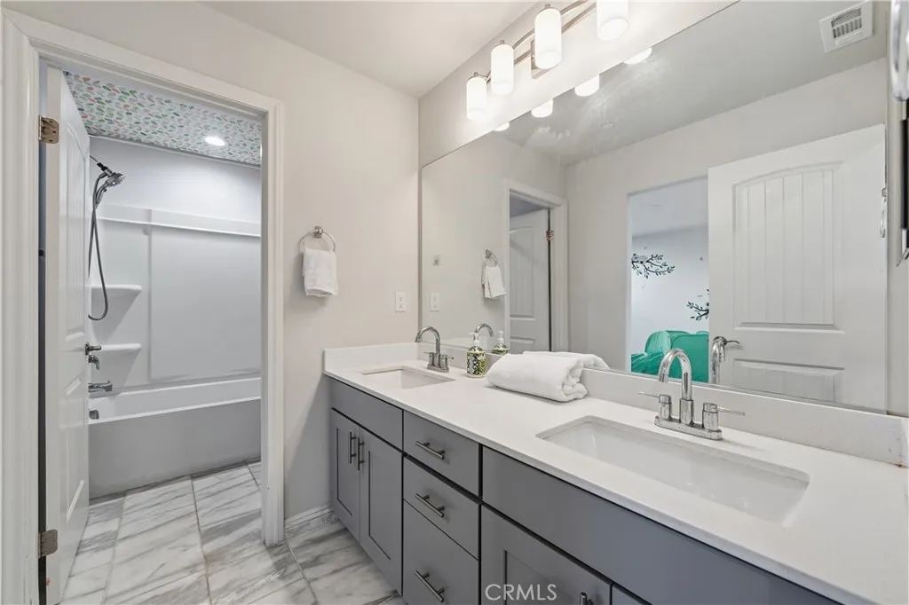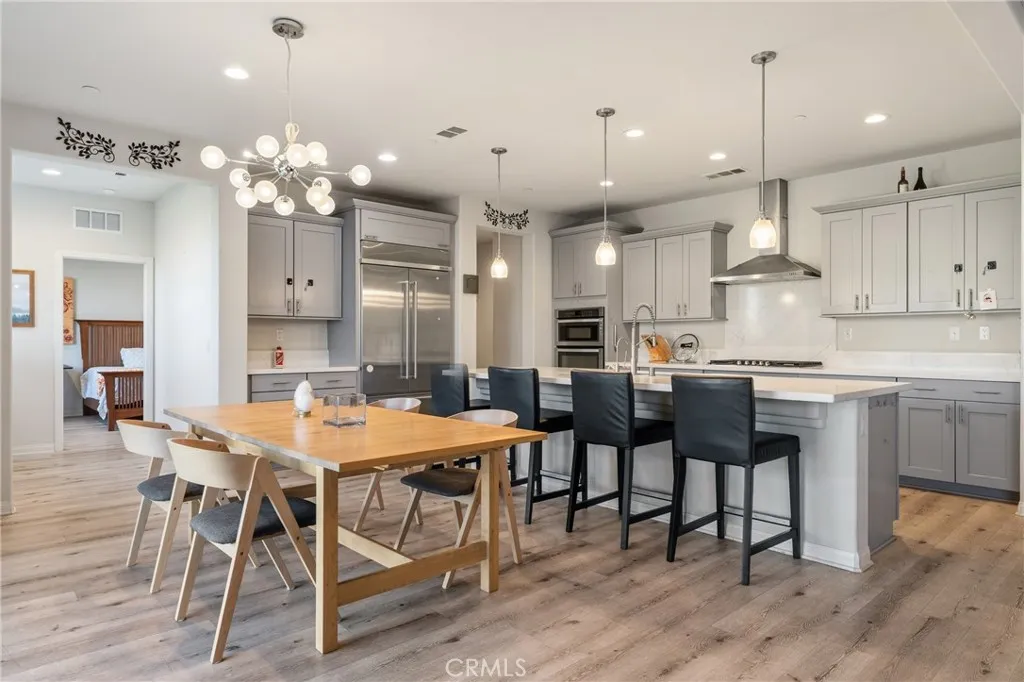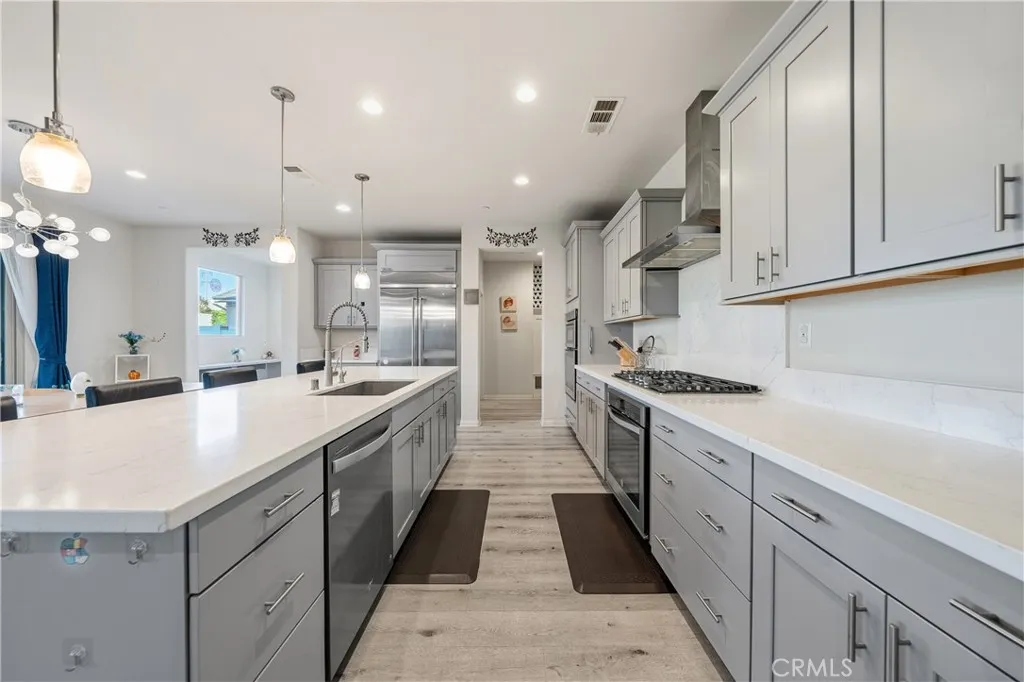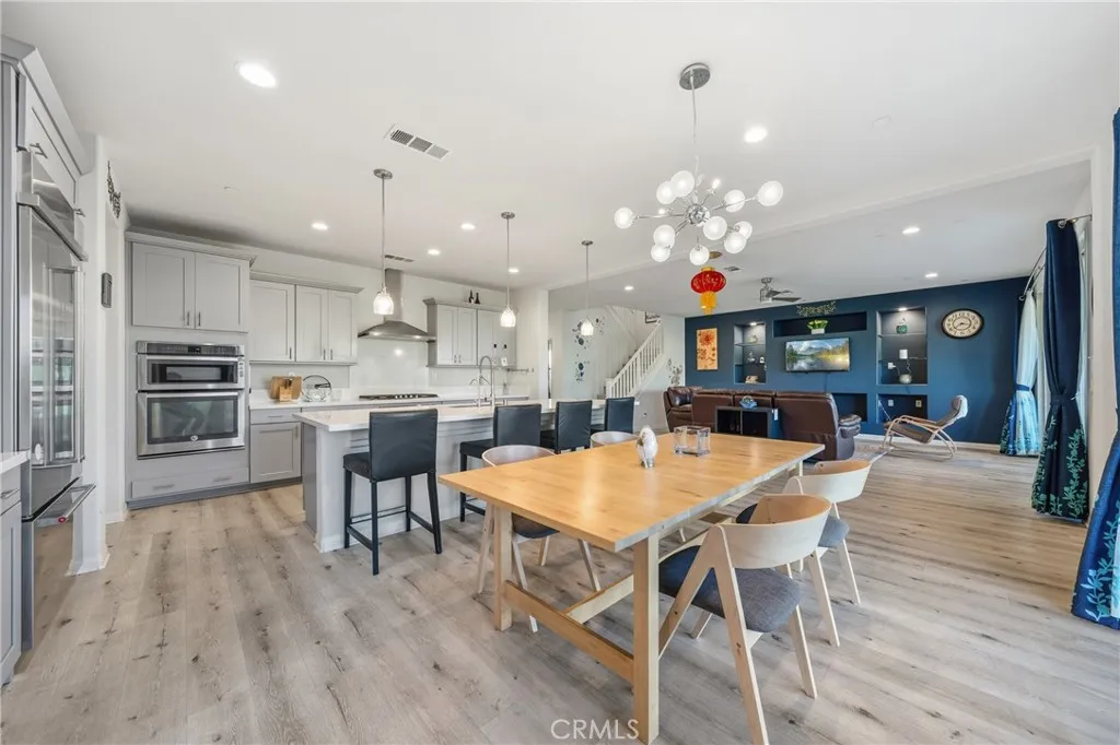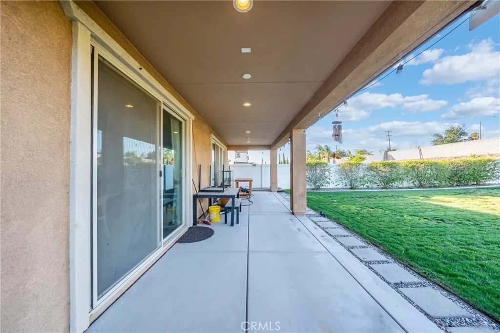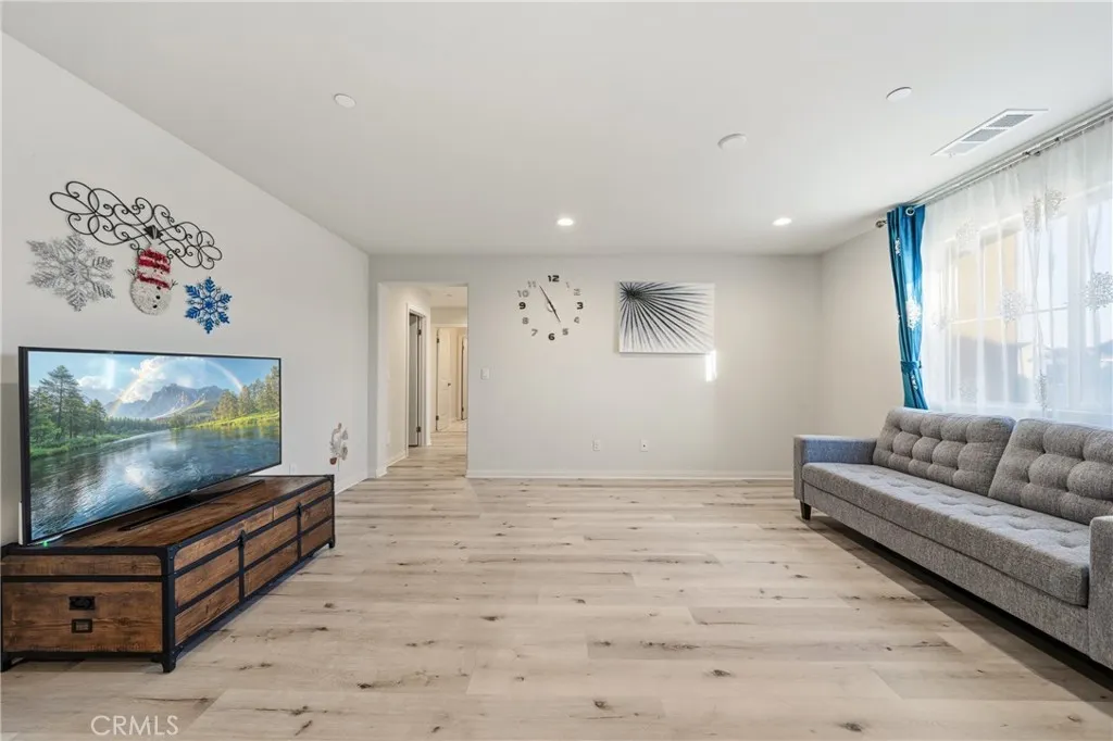 This high-quality detached residence stands in a distinctly higher category than typical homes in the area, offering 7 bedrooms and 5 bathrooms with approximately 4,100 square feet of interior living space—rare in both scale and functionality. The home features a main-floor en-suite bedroom, ideal for multi-generational living or hosting guests. Over $130,000 in upgrades have been invested throughout the property, significantly enhancing functionality, comfort, and overall quality. Interior appointments include luxury vinyl plank flooring, upgraded cabinetry throughout the home, and pull-out storage drawers in the kitchen cabinets. The kitchen is equipped with built-in professional-grade appliances, and the refrigerator is included in the sale. Additional recessed lighting has been added in multiple areas to enhance brightness and ambiance. Bathrooms and the laundry room are finished with marble flooring, while the primary bathroom features a full quartz shower and Carrara marble–style quartz countertops, offering a refined and durable finish. The home is equipped with a comprehensive smart home system, including smart light switches, smart thermostats, and a smart doorbell. Additional upgrades include a whole-house central vacuum system, Cat5e network wiring, and fiber internet capability with up to 1 Gbps upload and 1 Gbps download speeds, supporting fast and secure modern connectivity. A built-in media niche and pre-wiring for a surround sound system further enhance the living experience. Outdoor features include a California-style patio pre-wired for ceiling fans and a fully landscaped rear yard, ideal for everyday enjoyment and entertaining. A 12-foot sliding glass door creates a seamless indoor–outdoor connection. The front yard is designed with low-maintenance artificial turf, reducing ongoing upkeep. The garage is equipped with a 220-volt electrical outlet, ready to support electric vehicle charging. The north-facing orientation provides balanced natural light throughout the day and offers a clear advantage over east–west facing homes in terms of sunlight consistency and interior comfort. Well maintained and comprehensively upgraded, this home is ideal for buyers seeking space, quality, and long-term value. A rare opportunity to acquire a large-scale, highly upgraded residence in Jurupa Valley.