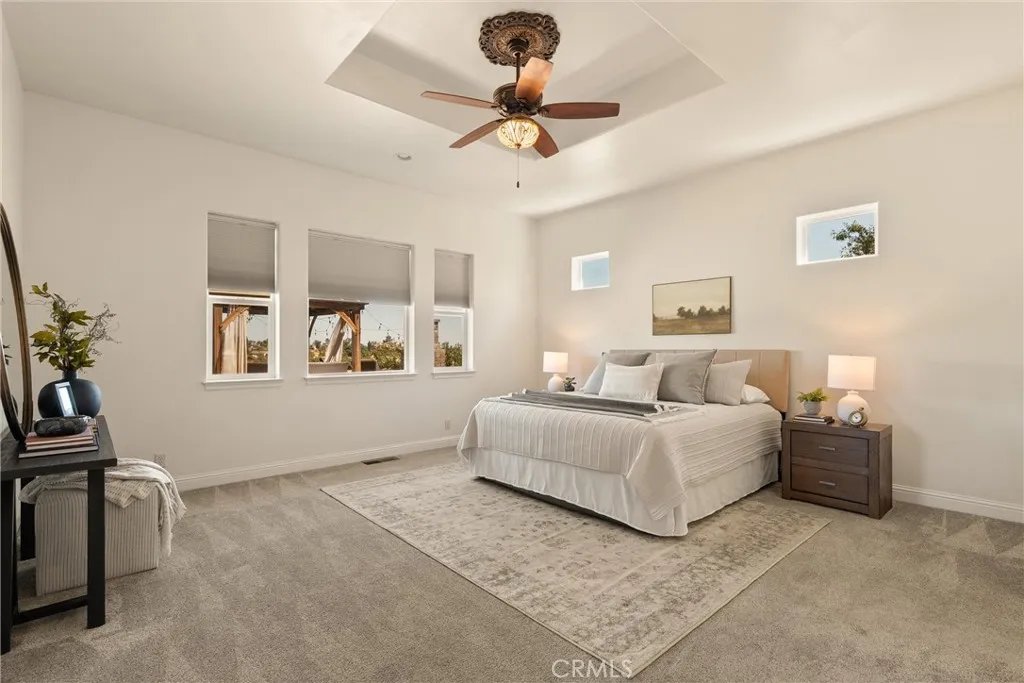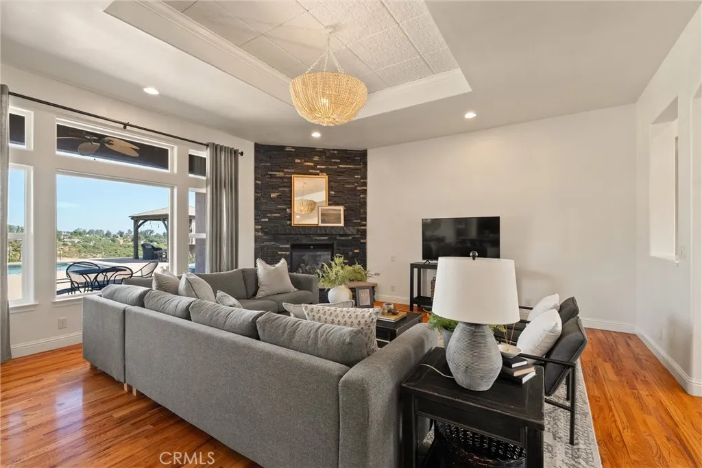 Tucked at the end of a quiet cul-de-sac within the sought-after gated community of Blue Oak Terrace, this estate offers a rare combination of luxury, privacy, and everyday functionality. Set on over two beautifully landscaped acres, the property captures valley and mountain views in a serene setting.