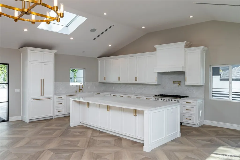 Nestled in the Foothills of La Crescenta, this newly completed French Modern estate offers refined elegance, privacy, and luxury living at its finest. Behind a private gate, you’ll discover serene grounds surrounded by mature fruit trees and tranquil landscaping. The main residence spans approximately 5,000 square feet with an open floor plan designed for both comfort and sophistication. Inside, Italian flooring flows throughout, leading you into a stunning chef’s kitchen featuring a La Cornue built-in range, quartz countertops, and an expansive kitchen island perfect for entertaining. With 6 bedrooms and 5 bathrooms, every detail has been thoughtfully crafted, from the custom finishes to the seamless indoor-outdoor living experience. Completed in 2023, this home exemplifies quality craftsmanship and modern elegance—every inch, from the interior design to the professionally landscaped grounds, reflects meticulous attention to detail. Adding to the appeal is a detached guest house offering 1,220 square feet of stylish living space, complete with 2 bedrooms and 2 bathrooms, its own address, and separate utilities—ideal for extended family, guests, or rental opportunities. Located within the award-winning La Crescenta Blue Ribbon school district, this exceptional property blends timeless European charm with modern California living.