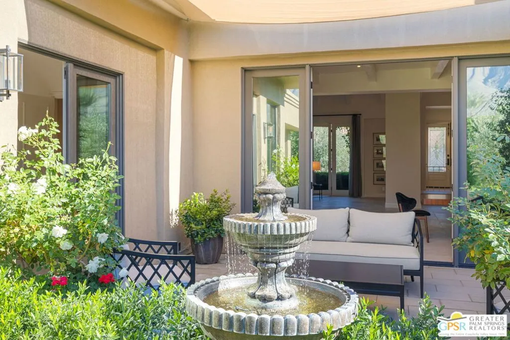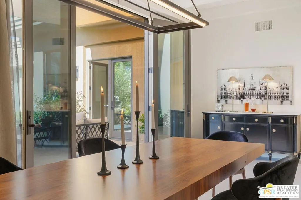 A masterclass in comprehensive NET-ZERO renovation, sustainability, and refined design. This 3-bedroom, 3.5-bath residence delivers true NEXT-GENERATION living in an ULTRA-QUIET South Palm Springs setting. Upgraded from the roof down, this private home offers PEACE OF MIND, performance, and elevated aesthetics rarely found in a single offering. Defined by HIGH CEILINGS, exposed beams, and stunning Turkish limestone floors throughout 100% of the home, EVERY SURFACE and system has been addressed. Upgraded LEVEL-5 SMOOTH WALLS, new casings, and baseboards have been added throughout. 3M Security Film on windows resists breakage with 90% heat reflection and mirrored exteriors that enhance safety, comfort, and privacy. The kitchen includes custom-made wood cabinetry, Brazilian quartzite countertops, Thermador appliances including double ovens with microwave, convection cooking and dehydration settings, induction cooktop, dishwasher, refrigerator, wine refrigerator, and a 5-stage reverse osmosis drinking water system. Bathrooms have been rebuilt with custom-made wood cabinetry, stone counters, glass-enclosed showers with polished nickel Brizo water fixtures. The three ensuite bedrooms all feature custom walk-in build-outs. System upgrades include two 22-SEER heat pump HVAC systems with air scrubbing and UV air purification, two high-efficiency heat pump water heaters, whole-house water filtration and softening. The pool has also been refreshed for efficiency. Home systems are easily operated by mobile device, allowing for the most efficient use of energy while maintaining comfort and peace of mind. The home is 100% solar electric with new owned solar panels and a Tesla battery. Additionally, the gas service and meter have been removed, making operation of the home truly fossil-fuel-free. Dual-type electric vehicle charging stations are included.
