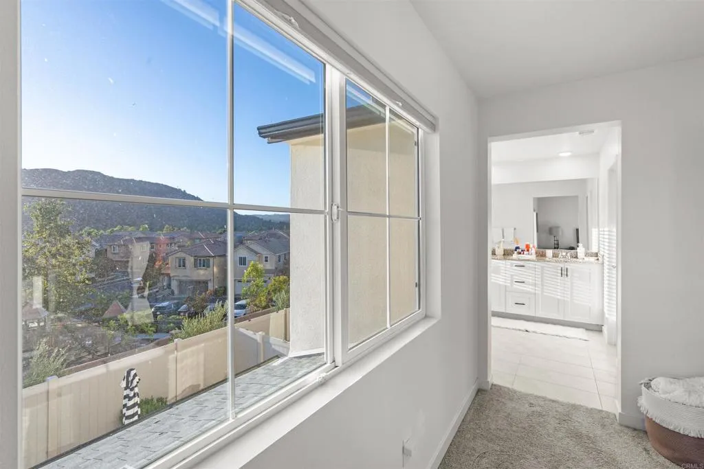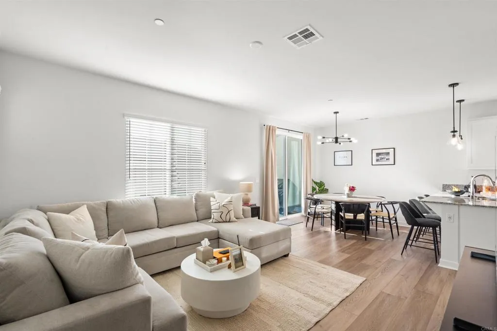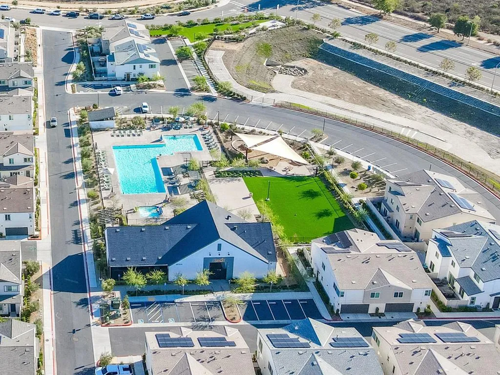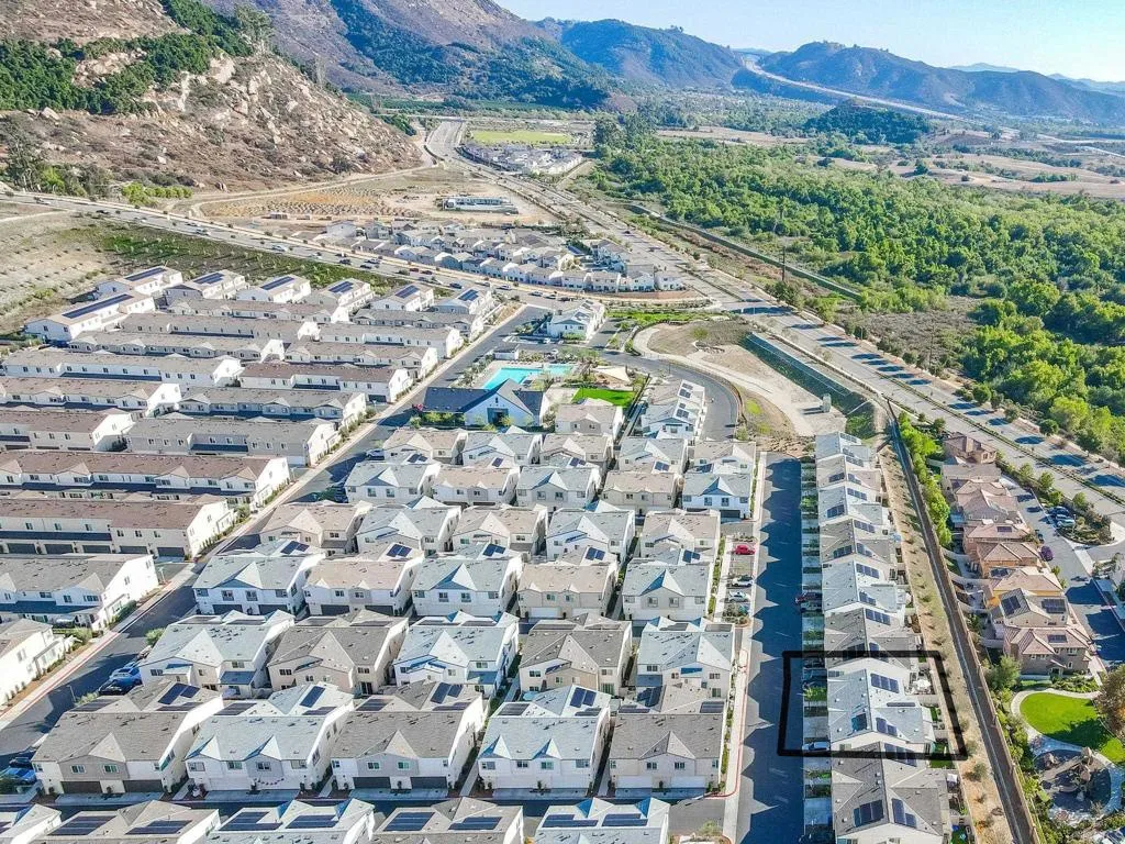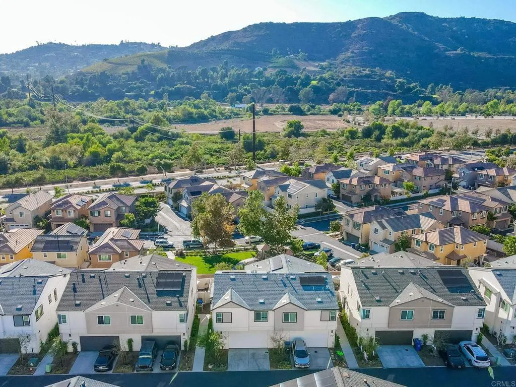 Welcome to 35190 Blossom Place, an elegant residence located in the Zutano at Citro community. This duet-style home is situated in a PREMIUM location with OWNED Solar, backyard w/ turf, no neighbors behind, offering peaceful views of rolling hills and beautiful sunset backdrops. Built in 2022, the home features 1,461 square feet of living space with 3 bedrooms, 2.5 bathrooms, and a bright, open-concept layout filled with natural light. With only one shared wall, it provides enhanced privacy and a more detached-home feel. Additional highlights include smart home features and energy-efficient systems designed to help keep utility costs low. A 2-car garage plus a 2-car driveway offer ample parking, while the fully landscaped backyard with turf and a patio creates a low-maintenance space ideal for relaxing or entertaining. At the popular Citro community, you’ll have access to resort-style amenities including a pool, spa, rec center, and playground. The Spot, Citro’s newest wellness hub, offers even more ways to enjoy an active lifestyle. Residents also enjoy 14 miles of scenic trails, a community garden, and 234 acres of open space. Surrounded by San Diego’s picturesque hillsides near Fallbrook, this home combines natural beauty with everyday convenience.