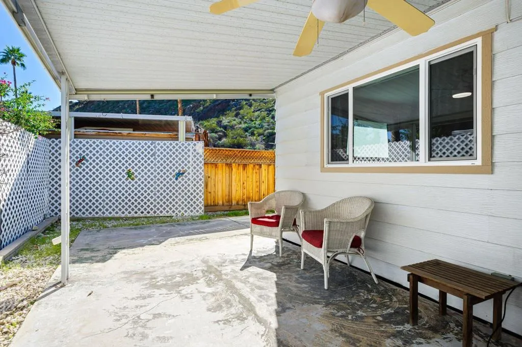 Parkview is a desirable 55+ community ideally situated adjacent to the Mesquite Ridge Wildlife Preserve and Lykken Trail, with easy access to downtown shops and restaurants. This beautifully updated home has been thoughtfully remodeled with quality finishes throughout.The open floor plan is enhanced by soothing, on-trend Benjamin Moore interior paint, leveled subfloors, and luxury vinyl plank flooring. Pella windows and sliding doors fill the home with natural light, while upgraded LED lighting adds a clean, modern feel. Major improvements include a new HVAC system and a remodeled kitchen featuring quartz countertops and stainless steel LG appliances, including a new washer and dryer.Both bathrooms have been tastefully remodeled, and the home offers ample storage throughout. The primary bedroom showcases breathtaking mountain views, with the rare delight of spotting bighorn sheep just beyond the backyard. Enjoy expansive mountain vistas from the living room as well--desert living at its finest.Parkview Mobile Estates offers resort-style amenities including a pool, spa, two clubhouses, dog parks, and on-site laundry facilities. The community is immaculately maintained by a dedicated staff who take pride in keeping the park pristine.Please note: no short- or long-term rentals are permitted. Park approval is required. The current land lease is in place through 2027 and will not be renewed; ownership will transition to management by a professional management company.