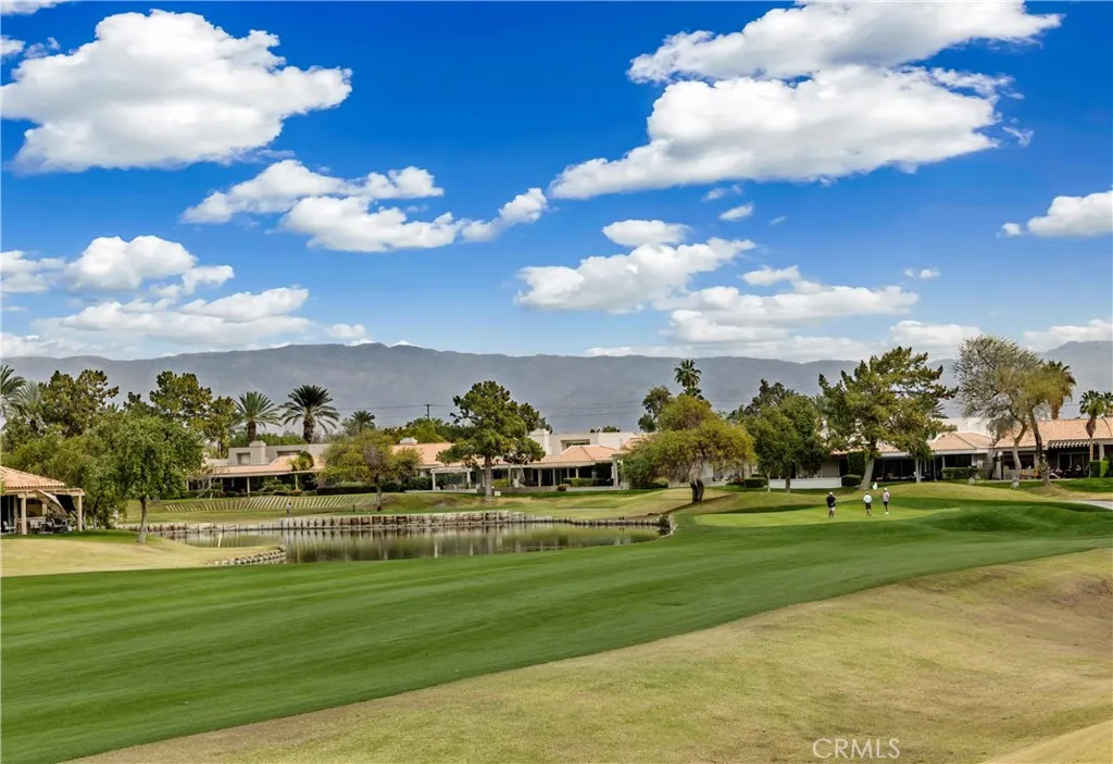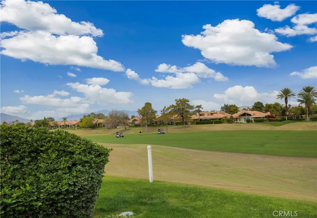 Panoramic Mountain & Golf Course Views situated in the highly sought-after Mission Hills East Country Club Community. This 3-bedroom, 2-bath FURNISHED home is located on an elevated lot overlooking the 7th hole of the Westin Pete Dye Course (fee simple- You own the land) Enter through the private gated courtyard with custom hard and soft landscape. Enjoy unrestricted breathtaking views through the frame-less Kitchen windows – featuring granite countertops, custom cabinetry and an open layout ideal for entertaining. Living room has gas fireplace and has easy access to backyard. Laundry located inside. A two-car garage plus dedicated golf cart garage offers ample storage and convenience. As part of the HOA, enjoy hassle-free living with exterior and roof maintenance, ground maintenance, trash service, and high-speed cable and internet included. Additional community amenities feature 4 pools and it is just a short golf cart ride to the Mission Hills clubhouse and the Westin resort. Fitness. Golf, tennis, and pickleball memberships are also available for an active lifestyle. See supplements for details. Sold fully furnished,( or choose to not include the furniture) this home is truly turnkey—ready for you to start enjoying the resort lifestyle.