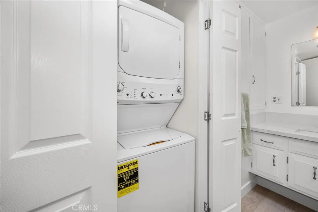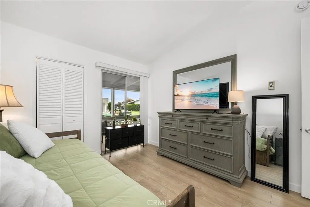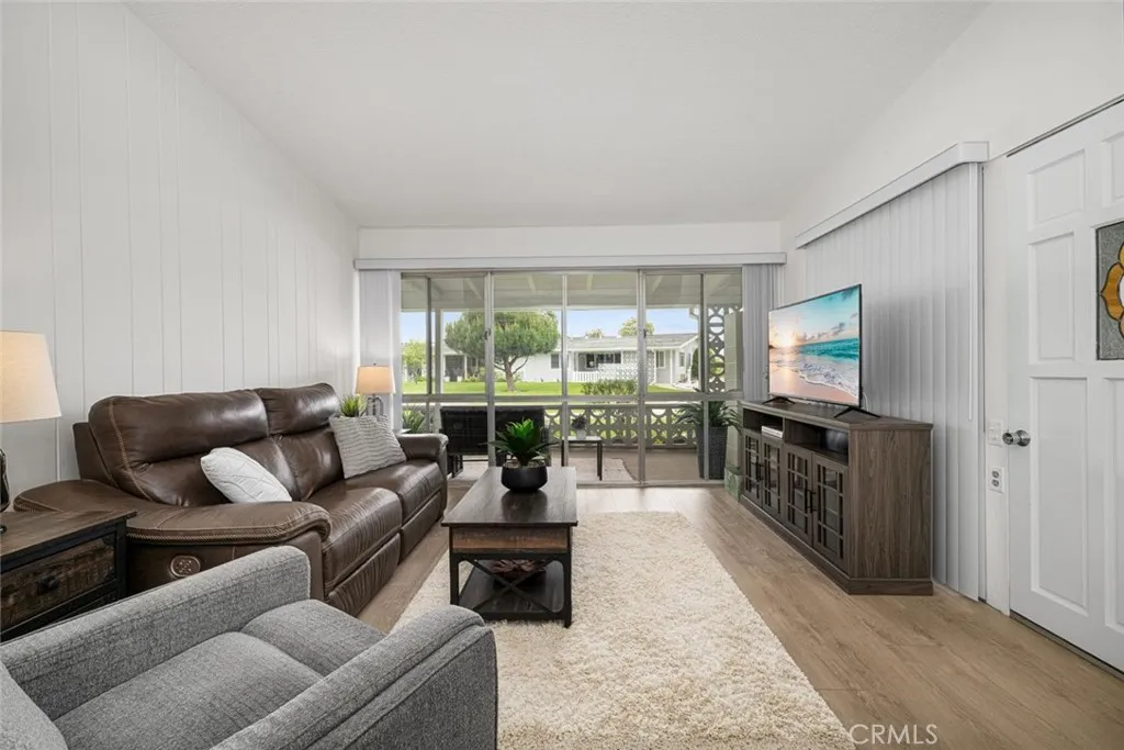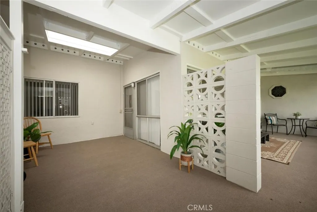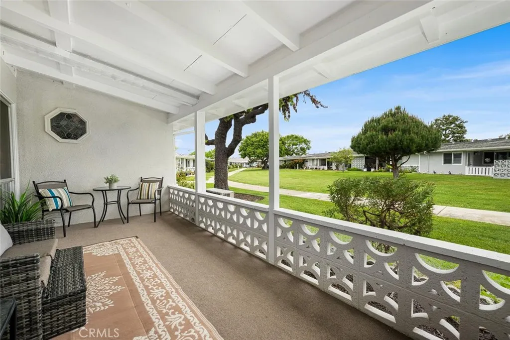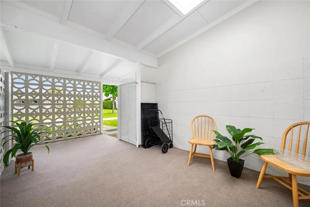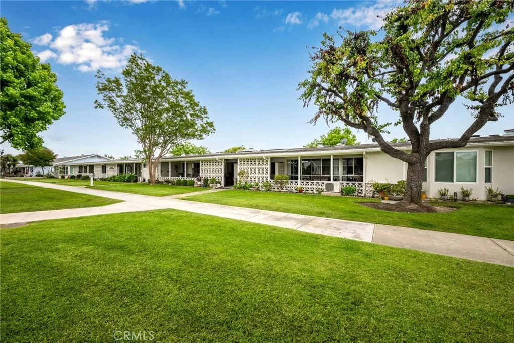 Wow! Adorable 2-bedroom, 1-bath patio home showcasing desirable upgrades including an in-unit washer and dryer, new quartz countertops with updated sinks, and a spacious walk-in closet in the primary bedroom. This charming home also features wonderful outdoor space with newly installed carpet and added storage cabinets, all set within a serene, park-like setting. Inside, enjoy newer vinyl plank flooring throughout and an A/C heat pump in the living room for year-round comfort. The updated kitchen is both stylish and functional with a large stainless-steel sink, modern faucet, skylight, and ceiling fan that fill the space with natural light and enhanced airflow. The bathroom offers a cut-down shower, skylight, and quartz countertop with an under-mount sink. The generously sized primary bedroom includes both a standard closet and an additional walk-in closet—perfect for extra storage or dual use. Come experience the comfort and charm of 26H in Mutual 3! SENIOR COMMUNITY-OFFERS THE FOLLOWING AMENITIES: 9 Hole Golf Course, Swimming Pool, Jacuzzi, Gym, Table Tennis, Shuffle Board, Billiards, Pickle Ball, and Bocce Ball courts. Amphitheater, 6 Clubhouses featuring: Art Room, Sewing, Crafts, Wood Shops, Lapidary, Pool Tables, Over 200 Clubs, LWSB is a Security-Guard-Gated Community. Also Library, Friends of Library Bookstore, Credit Union, Health Care Center, Pharmacy and Post Office (CARPORT 47, SPACE 21).