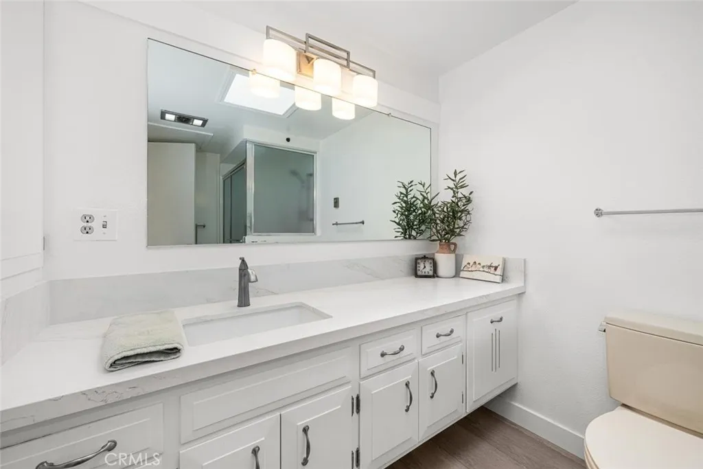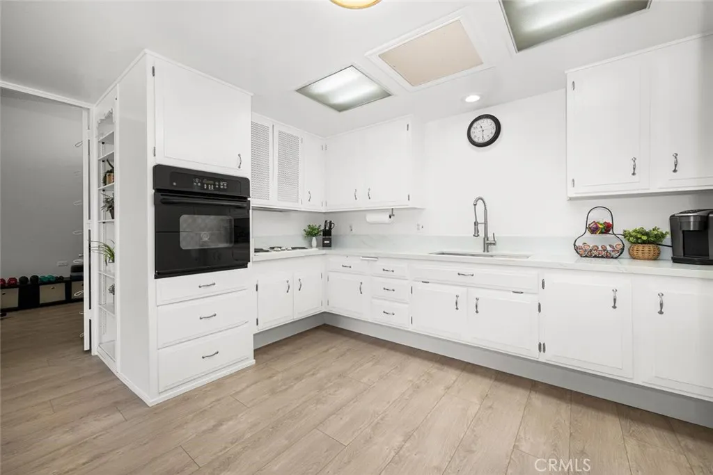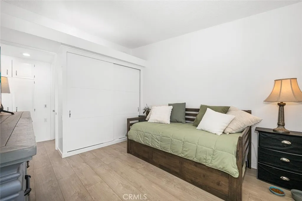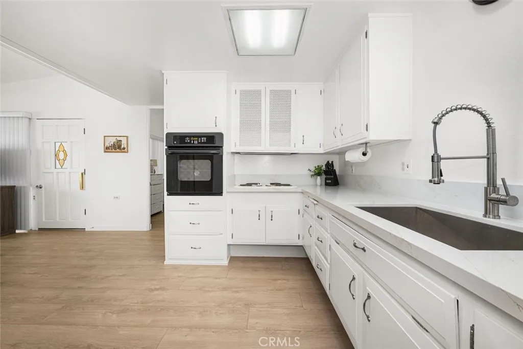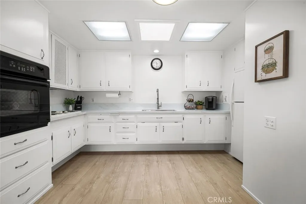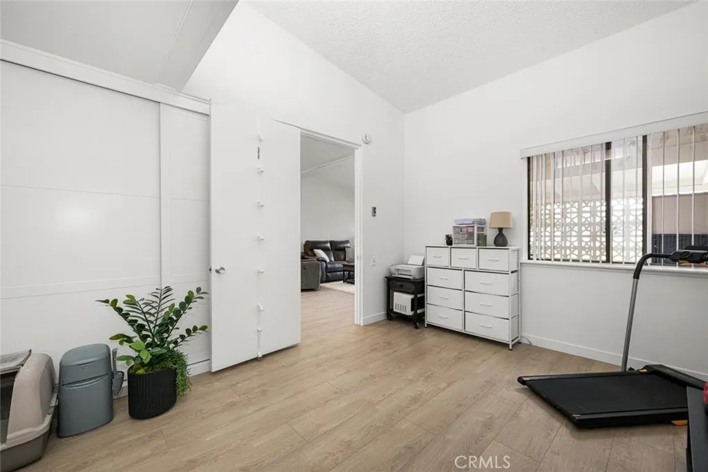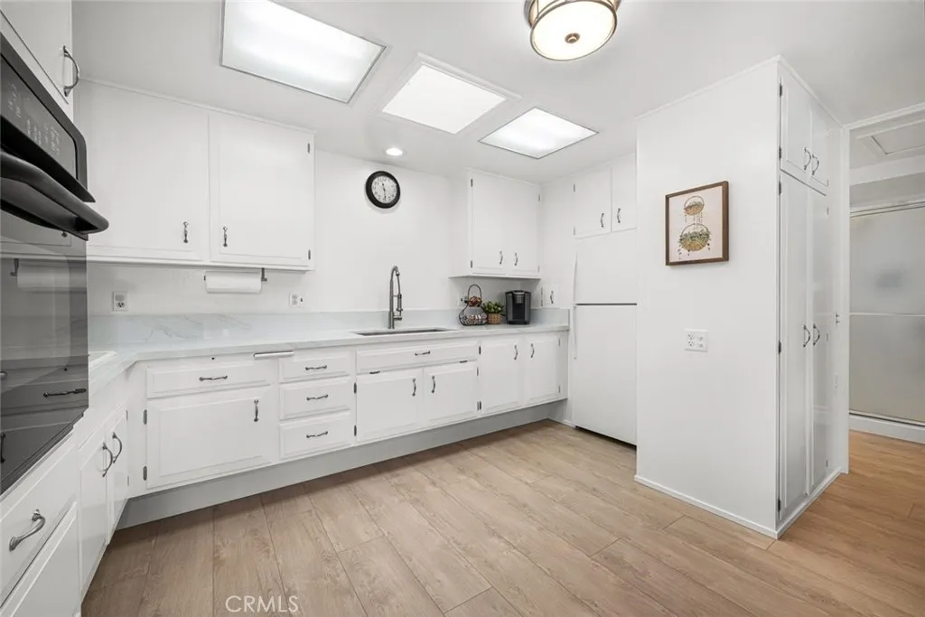 Wow! Adorable 2-bedroom, 1-bath patio home showcasing desirable upgrades including an in-unit washer and dryer, new quartz countertops with updated sinks, and a spacious walk-in closet in the primary bedroom. This charming home also features wonderful outdoor space with newly installed carpet and added storage cabinets, all set within a serene, park-like setting. Inside, enjoy newer vinyl plank flooring throughout and an A/C heat pump in the living room for year-round comfort. The updated kitchen is both stylish and functional with a large stainless-steel sink, modern faucet, skylight, and ceiling fan that fill the space with natural light and enhanced airflow. The bathroom offers a cut-down shower, skylight, and quartz countertop with an under-mount sink. The generously sized primary bedroom includes both a standard closet and an additional walk-in closet—perfect for extra storage or dual use. Come experience the comfort and charm of 26H in Mutual 3! SENIOR COMMUNITY-OFFERS THE FOLLOWING AMENITIES: 9 Hole Golf Course, Swimming Pool, Jacuzzi, Gym, Table Tennis, Shuffle Board, Billiards, Pickle Ball, and Bocce Ball courts. Amphitheater, 6 Clubhouses featuring: Art Room, Sewing, Crafts, Wood Shops, Lapidary, Pool Tables, Over 200 Clubs, LWSB is a Security-Guard-Gated Community. Also Library, Friends of Library Bookstore, Credit Union, Health Care Center, Pharmacy and Post Office (CARPORT 47, SPACE 21).