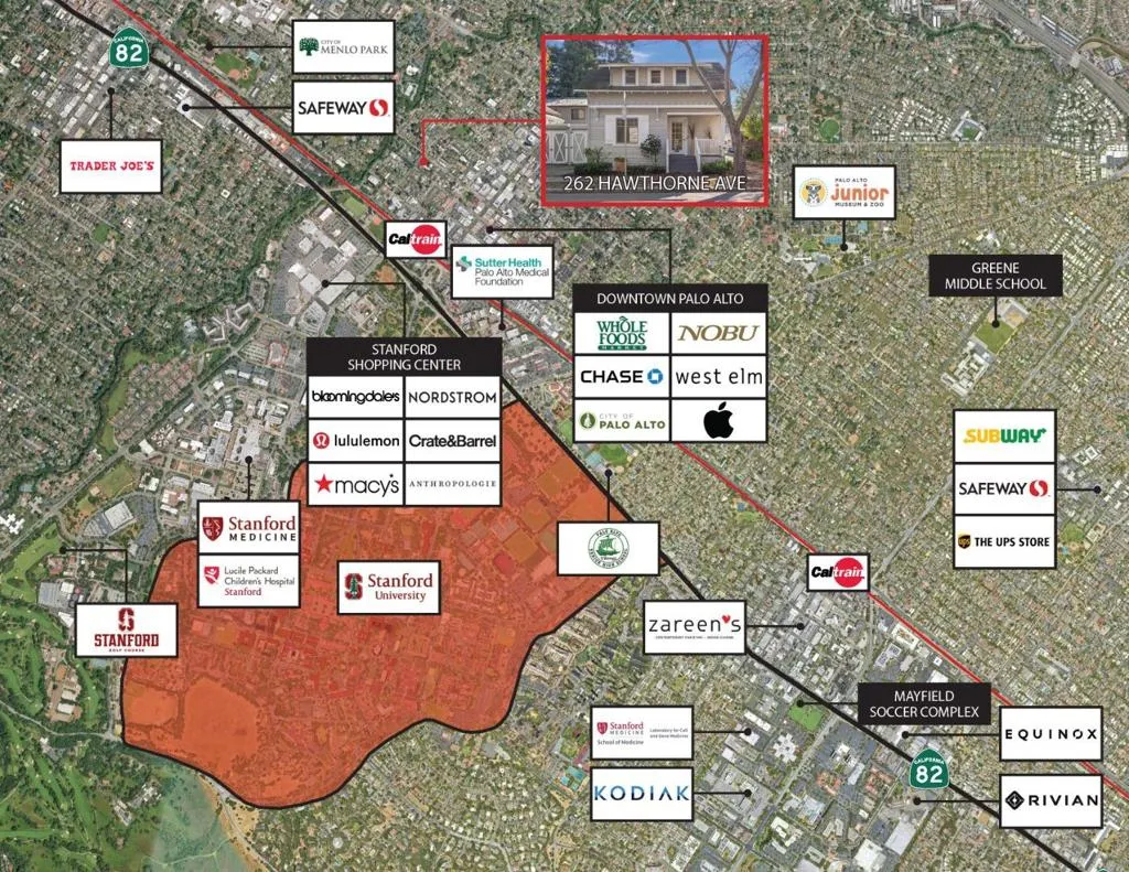 Welcome to 262 Hawthorne Ave, a charming single-family home ideally situated on a quiet, tree-lined street in the heart of Palo Alto. This inviting, move-in-ready residence blends timeless character with fresh modern updates, featuring beautiful hardwood floors, crisp finishes, and abundant natural light throughout. The functional floor plan offers comfortable living and dining spaces perfect for everyday living, relaxing at home, or entertaining guests. The bright kitchen provides ample cabinetry, generous countertop space, and an easy flow into the main living areas. Upstairs, the bedrooms offer a peaceful retreat with great natural light, complemented by an updated bathroom with classic finishes. Enjoy true indoor-outdoor living in the private backyard with a spacious deck, ideal for outdoor dining, weekend gatherings, or simply unwinding under the trees. Unbeatable location near Downtown Palo Alto, Stanford University, Caltrain, Stanford Shopping Center, and top local dining, shopping, parks, and commuter routes.