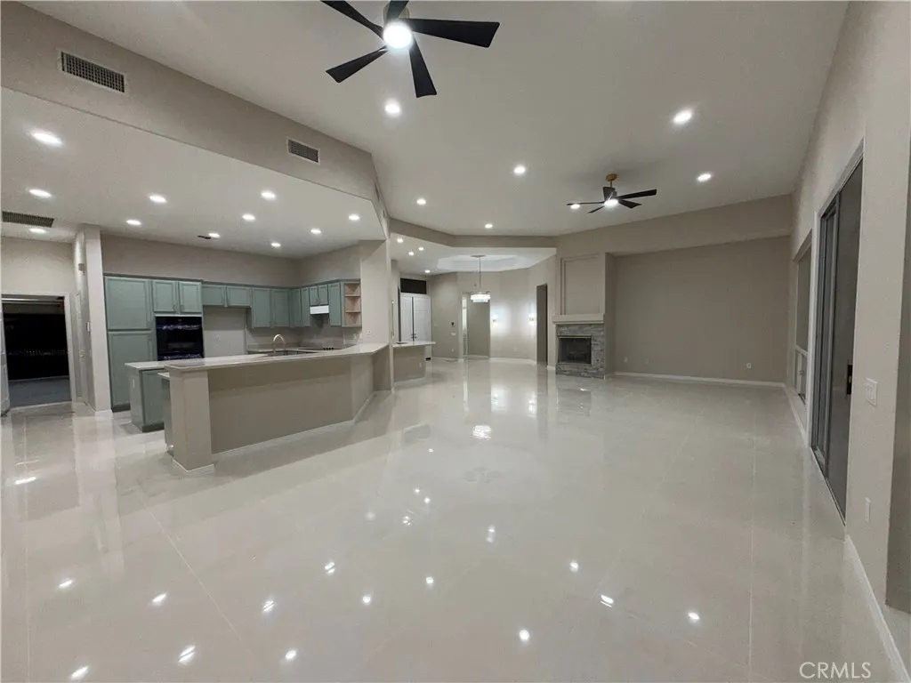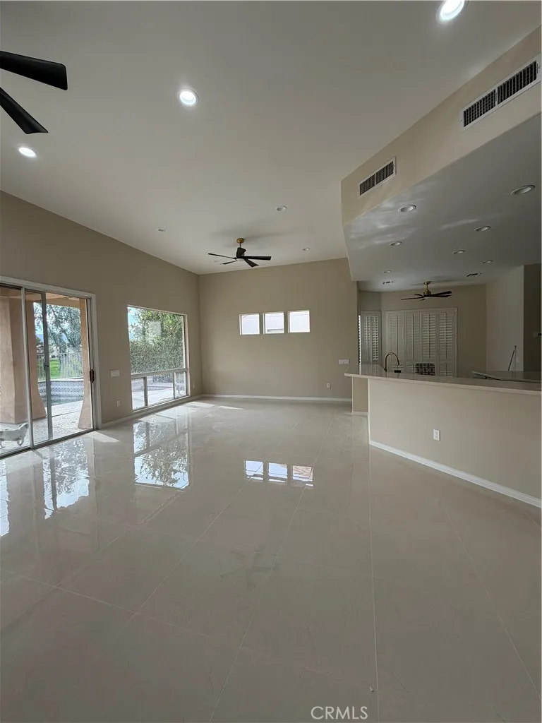 Situated on a quiet street, this beautifully upgraded and highly sought-after St. Tropez model offers over 2,500 sq. ft. of versatile desert living in Del Webb Sun City Palm Desert—one of the nation’s premier 55+ communities. This exceptional home features 3 spacious bedrooms, 3 bathrooms, and an extended garage, including a dedicated golf cart garage. The light-filled great room with soaring ceilings opens to a private backyard retreat overlooking the golf course, with breathtaking panoramic mountain views. Enjoy seamless indoor-outdoor living with a private pool, spa, waterfall feature, and expansive patio space—perfect for both relaxing and entertaining. The property is enhanced with desert-style landscaping in both the front and backyard. The open-concept kitchen and family room feature a large center island, casual dining area, and new appliances—ideal for everyday living and hosting guests. The primary suite offers a spacious walk-in closet, dual sinks, a large bathroom with ample storage, and a private retreat area perfect for a home office or exercise space. Direct access from the primary bedroom leads to the serene backyard. Two additional bedrooms provide flexibility for guests or a home office. Additional highlights include a laundry room, new flooring, and fresh paint throughout. Residents enjoy resort-style amenities including two championship golf courses, pools, a fitness center, walking trails, clubhouses, dining, and a vibrant social scene—all within a beautifully maintained, guard-gated community. Experience the best of desert living—schedule your private showing today!