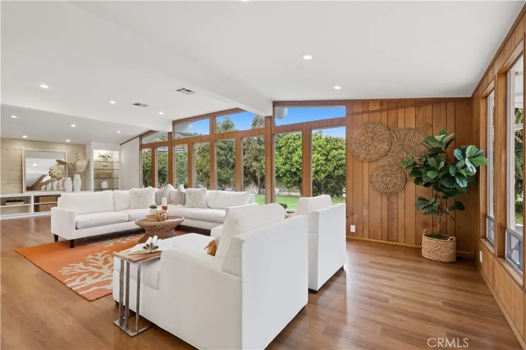 Capture unforgettable sunrises, peek ocean views, and serene greenbelt scenery from this move-in-ready home, ideally located on a private cul-de-sac in the highly sought-after South Shores neighborhood of Palos Verdes Shores. Thoughtfully remodeled, the home features an open floor plan with an expanded kitchen and dining area, built-in cabinetry, soaring ceilings, and abundant natural light from walls of glass, skylights, and recessed lighting. Recent upgrades include a newer roof, ducting, upgraded windows and doors, high-quality wood laminate flooring, new pavers, and a newly tiled deck and landscaped lawn. The spacious dining and family room open seamlessly to an oversized outdoor tiled deck and porch, perfect for relaxing or entertaining. The primary bedroom offers beautiful views and a spa-inspired bathroom with a walk-in shower with "his and her" shower stations. Generous closets, ample storage, and storage sheds provide exceptional functionality. The approximately 80'x70' lot offers a peaceful yard overlooking mature trees and lush foliage, creating a tranquil, private setting. Extra parking is conveniently located near the home. Palos Verdes Shores is a 24-hour guard-gated community offering true resort-style living, with coastal trail access, an exclusive 9-hole golf course, tennis courts, swimming pool, hot tub, fitness center, sauna, dog parks, and car wash. The recreation center features lounges, a banquet hall, billiards, a restaurant-style kitchen, piano, stage, and shuffleboard. Enjoy monthly activities including golf league, water aerobics, yoga, meditation, mahjong, pickleball, and more. An on-site beauty salon offers hair, massage, and nail services. Ideally located near fine dining, shopping, grocery stores, golf courses, and luxury resorts—just minutes from downtown, LA and LAX—this home offers the perfect blend of comfort, convenience, and resort living. Coastal living at it's finest!