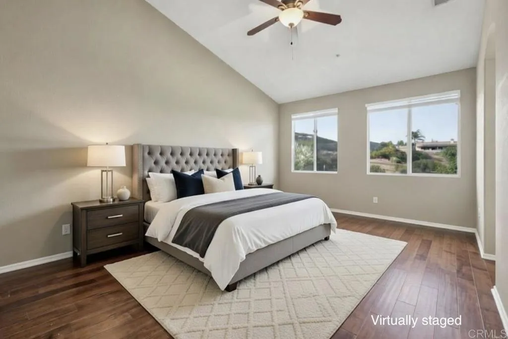 NEW PRICE IMPROVEMENT!! Welcome to this beautiful SINGLE STORY 3 bed 2 bath home located in the coveted Rancho San Vicente community in Ramona. Situated on a generous .68-acre lot at the end of a quiet cul-de-sac, this property offers breathtaking north and east-facing views and a peaceful, tucked-away setting. Inside, you’ll find an open and inviting floor plan featuring tile and acacia wood flooring, a spacious primary suite with a walk-in closet & soaking tub, stainless steel appliances, office nook, and a reverse osmosis system. The home also boasts a brand-new A/C unit paired with an Ecobee smart thermostat for year-round comfort and efficiency. Step outside to enjoy a true gardener’s paradise, complete with mature fruit trees including pear, olive, fig, orange, pomegranate, and grapevines. Raised garden beds provide ample space to grow whatever your heart desires, along with a fenced side yard offering additional flexibility and privacy. This property truly is a rare gem—combining comfort, space, and serene surroundings but still a close proximity to the heart of town.