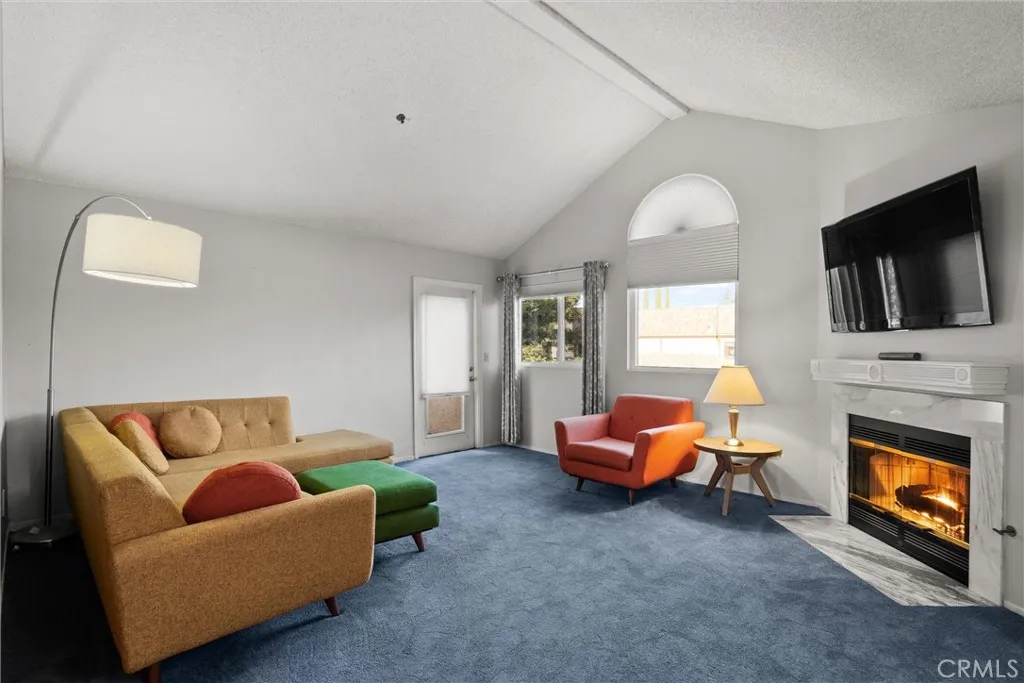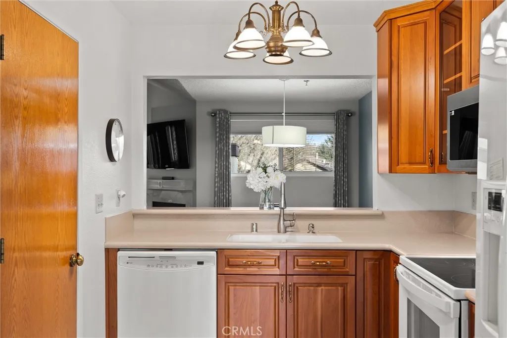 Welcome to your perfect 55+ retreat! This charming 2 Bed, 2 Bath end-unit condo at Sierra Sunrise is tucked at the end of a peaceful cul-de-sac. Step through a gated courtyard into a sunlit open living/dining space with a cozy gas fireplace and built-ins. The kitchen shines with updated cabinets, countertops, and a breakfast nook perfect for morning coffee. Relax in the master suite with its private balcony, or enjoy nearby walking paths leading to the lake. With indoor laundry, skylights, and a one-car garage with extra storage, low-maintenance living has never looked this good!