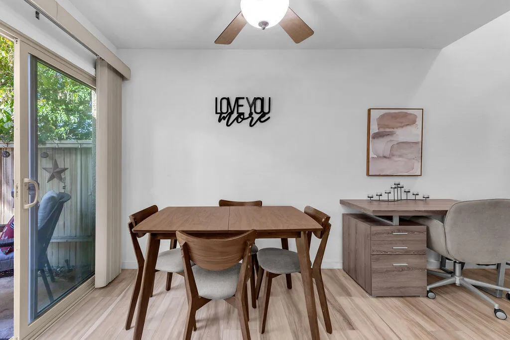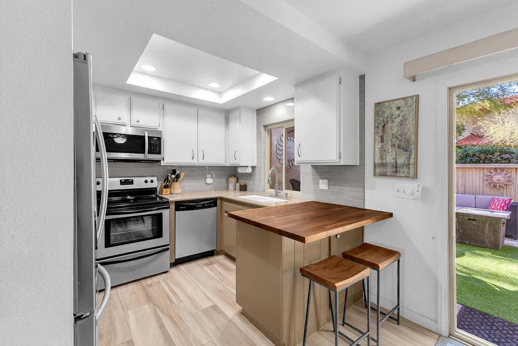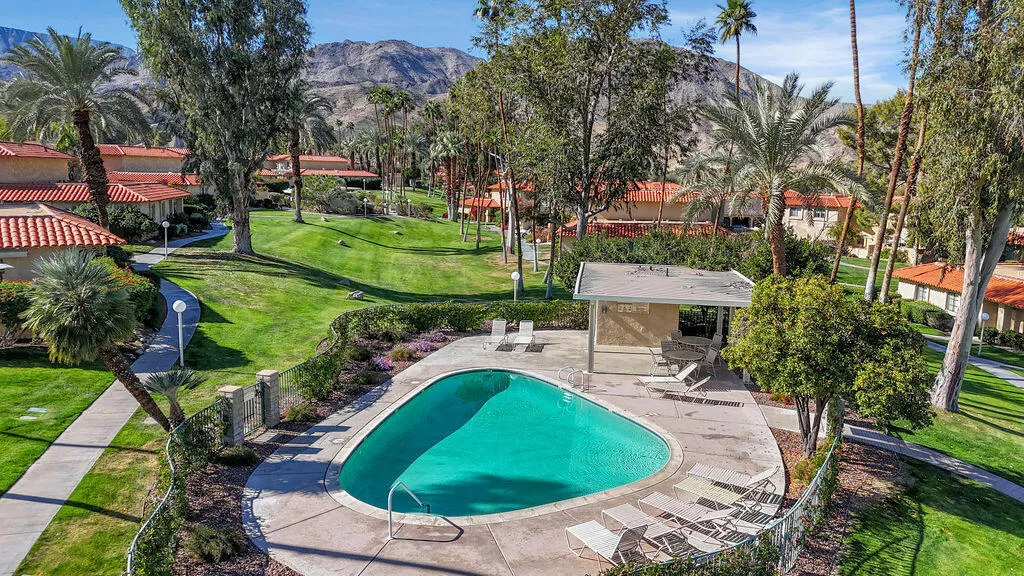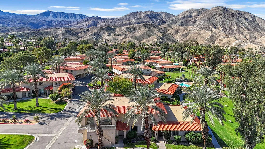 Nestled within the desirable Deep Canyon enclave of South Palm Desert, this two bedroom, two and a half bath townhouse offers a composed blend of contemporary design and serene, greenery lined surroundings. Filled with natural light, the home feels bright and inviting throughout, elevating each living space with an effortless sense of ease. Thoughtfully updated with modern finishes and intentional enhancements, the interiors strike a refined balance between comfort and style, feeling current, clean lined, and easy to live in. Outside, lush landscaping sets a tranquil, resort like tone, complemented by an appealing suite of recreational amenities including tennis courts, pickleball courts, and bocce ball courts, along with a communal garden that lends itself beautifully to seasonal rental enjoyment. Ideally located just one and a half miles from El Paseo, you are effortlessly connected to Palm Desert's most celebrated high end shopping and fine dining, offering a lifestyle that feels both vibrant and refined. An exceptional opportunity to experience the best of desert living, this residence is where outdoor leisure, modern convenience, and everyday calm converge into an elegant retreat in which luxury and relaxation comfortably coexist.