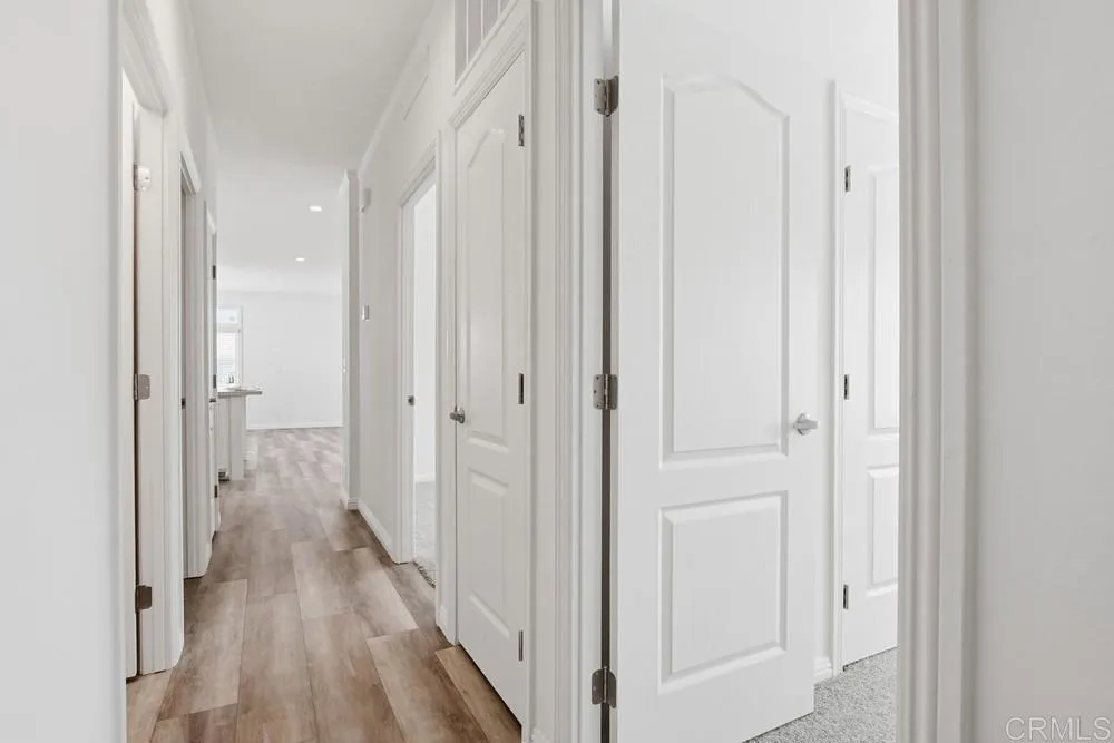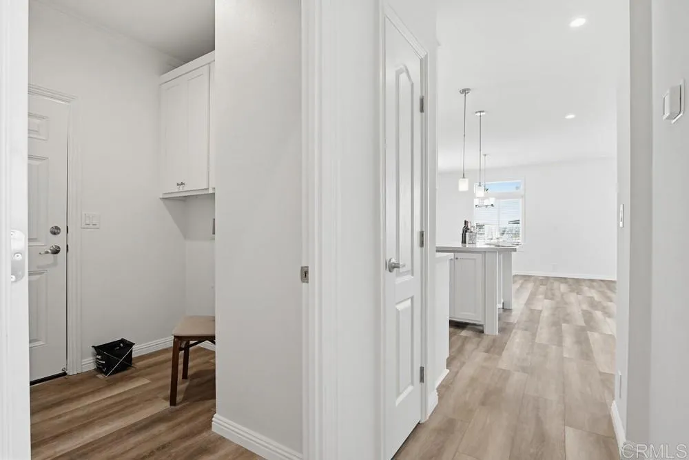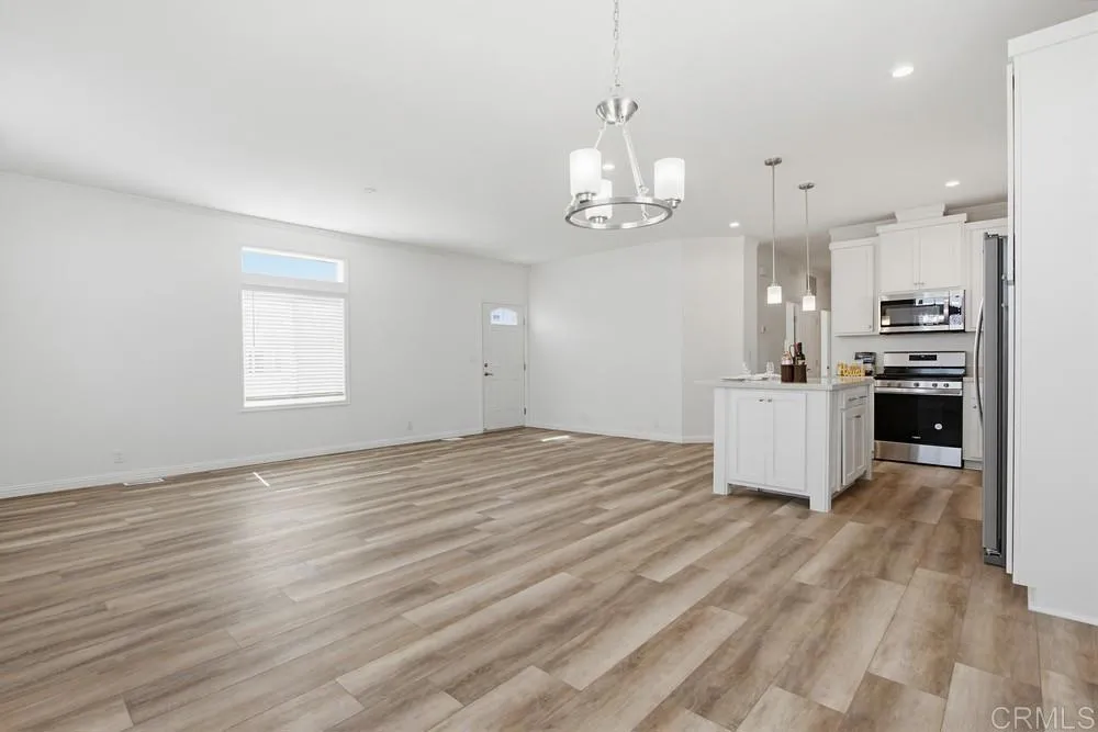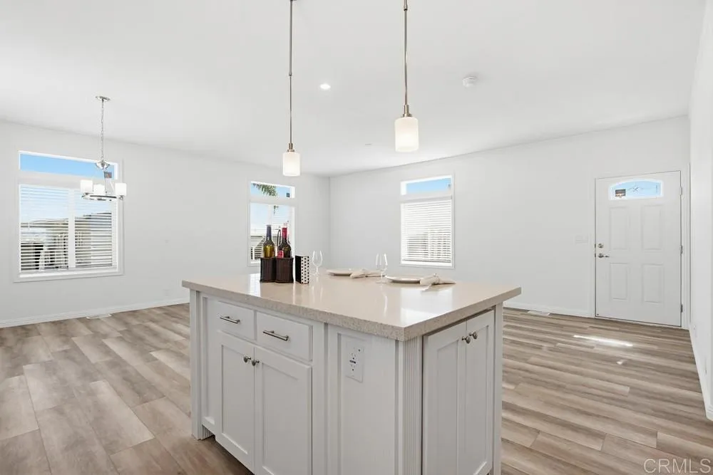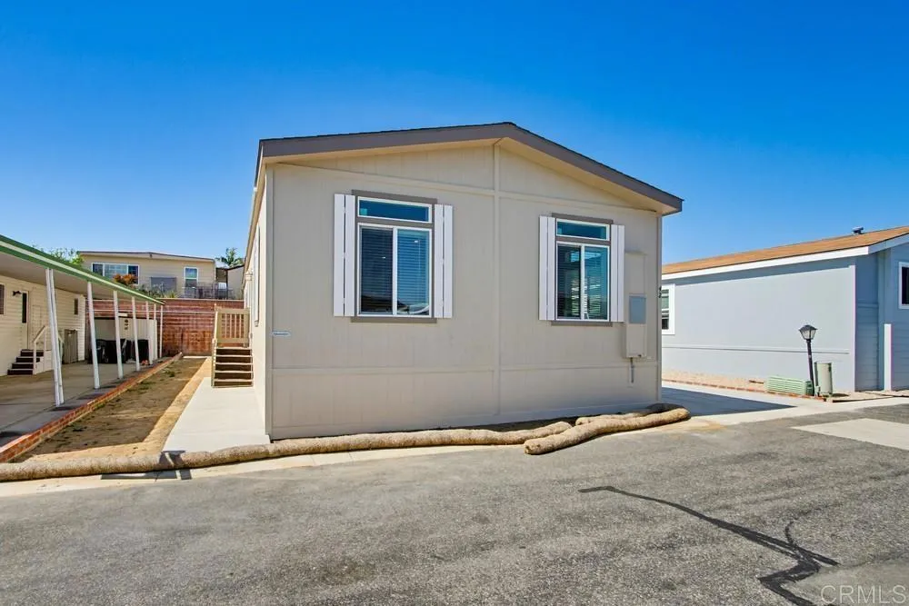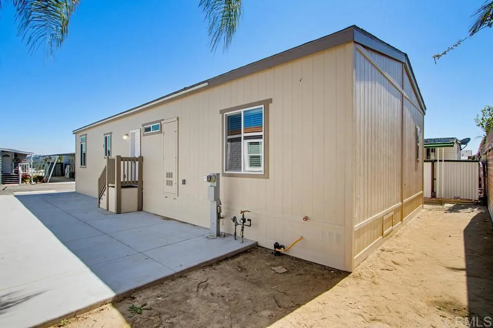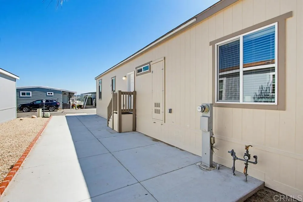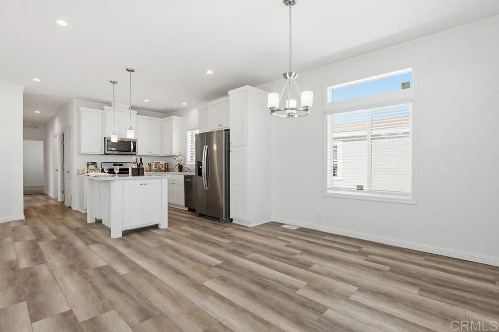 2024 Silvercrest | 3 Bed | 2 Bath | 1,325 ESF | New Construction Turnkey and never lived in! 9 FOOT CEILINGS!!! This beautiful home with plenty of extras! offers plenty of light!, open floor plan designed for comfortable living. The spacious living and dining areas feature LVP flooring and recessed lighting, flowing seamlessly into the well-appointed kitchen with quartz countertops, center island with pendant lighting, pantry, brushed nickel hardware, and stainless steel appliances including refrigerator, dishwasher, gas range, built-in microwave, and single-basin sink. The primary suite includes a generously sized walk-in closet and an elegant bath with dual sinks, oversized walk-in shower with seating, private water closet, and built-in linen storage. The two additional bedrooms are generously sized and carpeted for comfort. The secondary bathroom features a tub/shower combination. Additional highlights include dual-pane windows with blinds throughout, central heat and air, a large laundry closet with built-in cabinetry, long newly concreted driveway, and a high brick wall behind the home for added privacy. Located in Rancho Calevero, a 55+ land-leased community in Oceanside (buyer to verify), offering a renovated clubhouse, billiard room, library, year-round heated pool, scenic walking paths, and RV storage. Conveniently near shopping, dining, medical facilities, beaches, and freeway access. Base space rent $665/month + utilities.