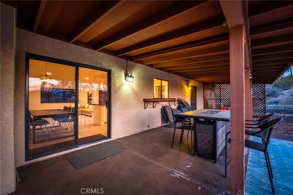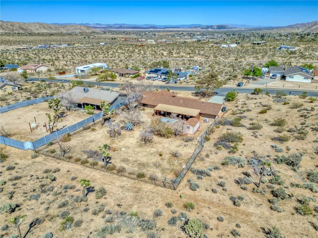 Welcome to the Joshua Tree Homestead! Located on a quiet hillside street in a desirable Joshua Tree neighborhood, this beautifully updated 3-bedroom, 2.5-bath home offers privacy, views, and convenience just minutes from downtown. Renovated in 2021 with new flooring, interior paint, window blinds, and updated countertops, the property has been lightly used and is in move-in-ready condition. The home features an open, light-filled layout, central heating and air, and an oversized attached 2-car garage with a half bath. The large, fully fenced backyard includes a covered patio, fire pit area, and a detached storage shed. Paved road access and driveway add everyday convenience. Offered fully furnished with appliances included. Ideally located near the west entrance of Joshua Tree National Park, perfect for a primary residence, vacation home, or investment property. A rare combination of location, views, upgrades, and turnkey readiness—this is a must-see Joshua Tree gem.