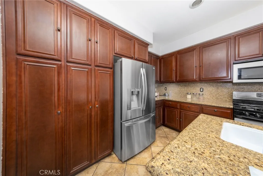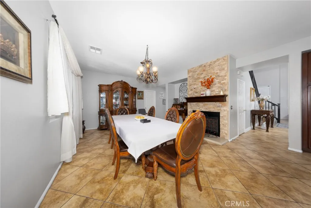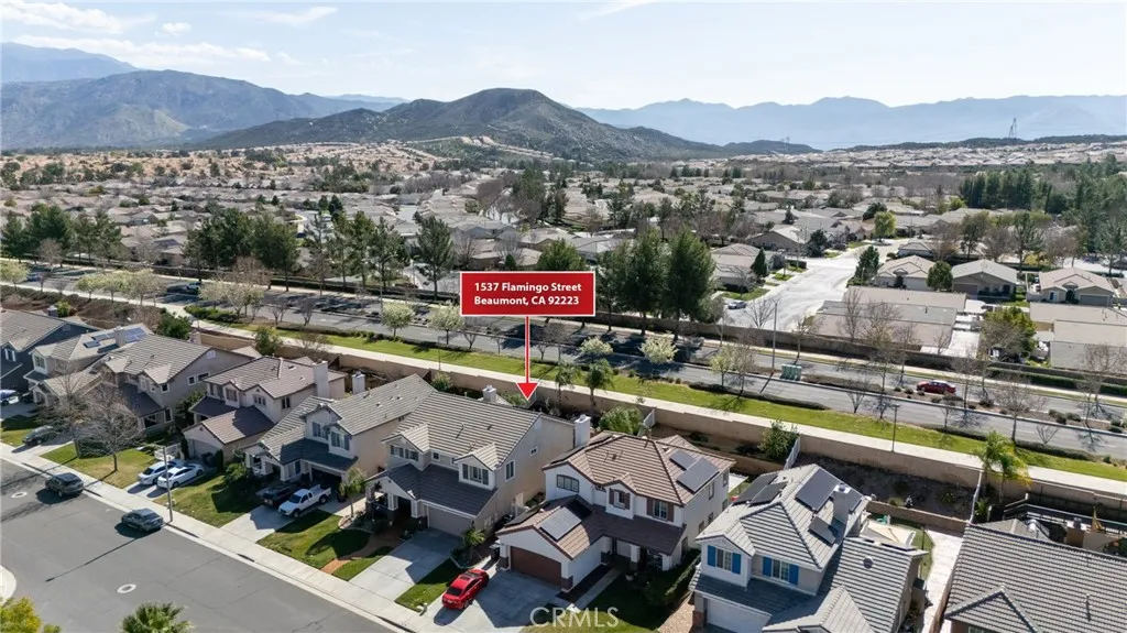 Lovely pool & spa home in Beaumont! This 4 bedroom, 3 bath, 3 car tandem garage home has been meticulously cared for. Home features a separate living room and family room with a downstairs bedroom with an adjacent bathroom. Home has plenty of upgrades throughout. Tiles flooring throughout the living room, family room, kitchen, bathrooms & laundry room. Laminate flooring on stairs, upstairs hallway & bedrooms. Kitchen features island with a sink & seating for two; cherry stained cabinets, granite countertops, stainless steel appliances & recessed lighting. Family room off the kitchen which is currently being used as a large dining room features a cozy stone veneer fireplace & wood mantle. Plenty of storage throughout the home. Upstairs laundry with extra cabinets. Spacious primary suite with walk in closet, double sinks, makeup desk, separate tub & tile surround shower. Additional upgraded features throughout the home include raised panel doors, upgraded base molding, ceiling fans, bathroom mirrors & lighting fixtures. Don't forget about the backyard! Large covered patio with stamped concrete leads you out to the lovely saltwater pool & spa. Block wall across the back of the property with vinyl fencing down the sides. 18 solar panels add affordability to the home. Close to park, shopping, dining & movie theatre with just a few minutes to the freeway. Come and see this beautiful home!