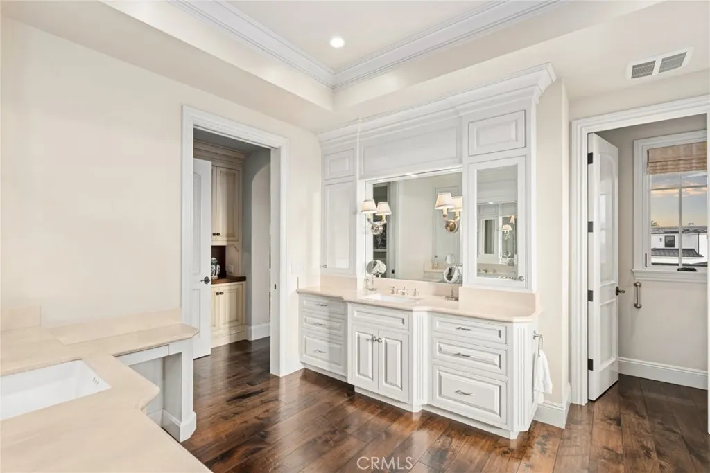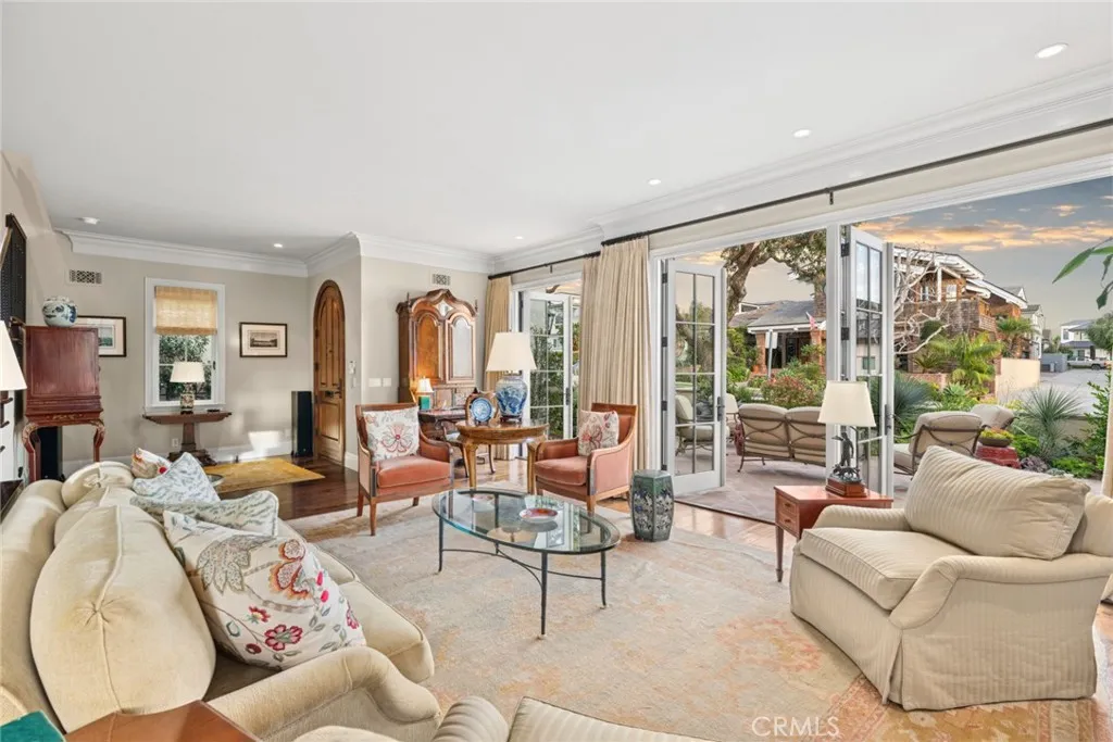 Situated on an oversized 40-foot-wide lot in the coveted 200 block of Corona del Mar’s Flower Streets, this custom-built estate is the epitome of class and elegance. Constructed in 2009, the thoughtfully designed residence offers 4 bedrooms plus a den, 4.5 bathrooms, and approximately 4,300 square feet of refined living space. Upon entry, an open, light-filled floor plan welcomes you, highlighted by a gracious living room with fireplace and French doors opening to multiple private outdoor patios, seamlessly blending indoor and outdoor living. The chef’s kitchen is beautifully appointed with a wood-topped center island, Sub-Zero refrigerator, Dacor six-burner range, and an expansive butler’s pantry, ideal for both everyday living and entertaining. The second level features three spacious en-suite bedrooms, a den with custom built-ins, and a luxurious primary suite complete with a private balcony and spa-inspired bathroom. Two additional outdoor spaces are also located on this level—one offering peek-a-boo ocean views, and the other centered around a large outdoor fireplace, perfect for relaxation. The third level showcases a generous rooftop patio with stunning panoramic ocean and Catalina Island views, creating an exceptional setting for entertaining or enjoying sunsets. Additional highlights include solid walnut flooring throughout, a large laundry room, an elevator servicing all three levels, and a three-car garage with epoxy flooring and built-in storage. Ideally located just steps from the beach, as well as world-class shopping, dining, the farmers market, and all that Corona del Mar has to offer, this exceptional property embodies the best of coastal luxury living.