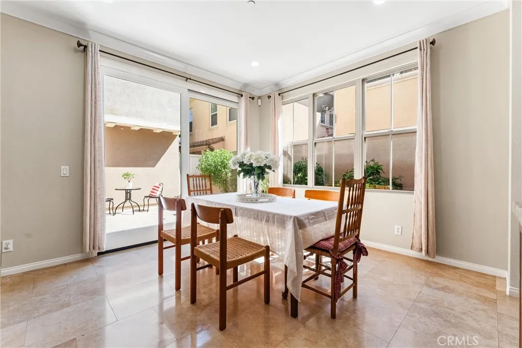 A fabulous townhome that feels like a detached single family home--only one attached wall and mostly in the garage! Located on a quiet interior street, this popular Monterey Plan 3 in Woodbury East displays architectural sophistication, highlighted by abundant windows and doors, an inviting front porch, & a charming courtyard. Adding to its curb appeal is a rarely seen upper deck that enhances the handsome front façade and distinctive architectural character. 3 bedrooms plus a den/office with high-end custom upgrades at every turn. As you enter, timeless staggered travertine flooring flows throughout the entire first floor. Brand-new carpet on the staircase and second floor. An expansive living room opens to a gourmet kitchen with a large central island. Situated at the heart of the home, the kitchen boasts granite countertops, a full backsplash with glass/natural stone mosaics, custom cabinetry with glass-paneled doors, under cabinet lights, and stainless steel appliances. New interior paint, including baseboards and walk-in pantry's shelves. The spacious dining area features a sliding glass door, opening to an enchanting courtyard, beautifully landscaped with staggered tiles, mosaic accents, & fruit trees—perfect for indoor-outdoor living. The primary suite showcases a private deck and a luxurious ensuite bath, upgraded with marble countertops, a marble tub surround, and a walk-in shower. Mirrored closet doors & high-end built-in closet organizers in all 3 bedrooms. Whole house water softener/filtration system. Reverse osmosis under the kitchen sink. Instant hot water circulator under the primary bath's sink. LED recessed lighting with dimmers in every room, plantation shutters, crown moldings, 2 NEST thermostats, & keyless entry for both the front and garage doors. The garage is fully finished with epoxy flooring, 50 amp-250V plug for EV, and custom cabinetry throughout—including built-in shoe shelves. Unwind on the covered deck after a long day, dine under the stars in the courtyard, or showcase your favorite flower pots on the welcoming front porch. World-class HOA amenities, including pools, spas, sport courts, a gym, clubhouse, tot lots, and more. The Monterey HOA not only maintains the landscaping, exterior paint, roof, balcony, and termite work, but also offers another pool/shaded kiddie pool and a playground within walking distance. Easy access to freeways and just minutes from Woodbury Town Center, the Great Park, Irvine Spectrum, and more.