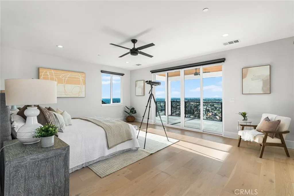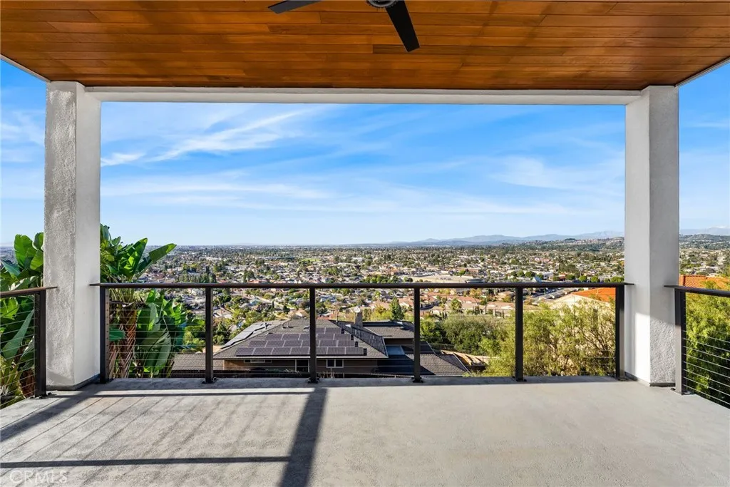 Contemporary Hilltop Retreat with Sweeping Year Round Sunset Views. Perched high in one of North Tustin’s most coveted neighborhoods, this 2020-built modern residence captures unobstructed west-facing vistas—snow-capped mountains, the sparkling Pacific, Catalina Island, even downtown LA and of course, the Disneyland fireworks. Spanning 4,075 sq ft, the home offers four bedrooms, three full baths, and two half baths, designed for effortless entertaining and relaxed everyday living. Ten-foot ceilings (nine in the bedrooms) and an airy open plan unite the kitchen, dining, and family rooms, while a formal living room with fireplace, a flexible den/office or fifth bedroom, and three view balconies invite gathering or quiet retreat. The chef’s kitchen impresses with white shaker cabinetry, quartz counters, an oversized island, walk-in pantry, and premium stainless appliances—including a six-burner range, coffee bar and wine cooler. The 800 sq ft primary suite is a private sanctuary featuring a spa-inspired bath, expansive walk-in closet, and a 200 sq ft balcony for soaking in amazing sunsets. A built-in, wall-mounted, self-cooled data rack underscores the home’s tech-forward design. Outside, the backyard is ready for a hot tub, garden, or play space, and the three-car garage provides generous storage. Combining luxury, comfort, and incomparable views, this hilltop masterpiece offers a lifestyle that is as breathtaking as its views.