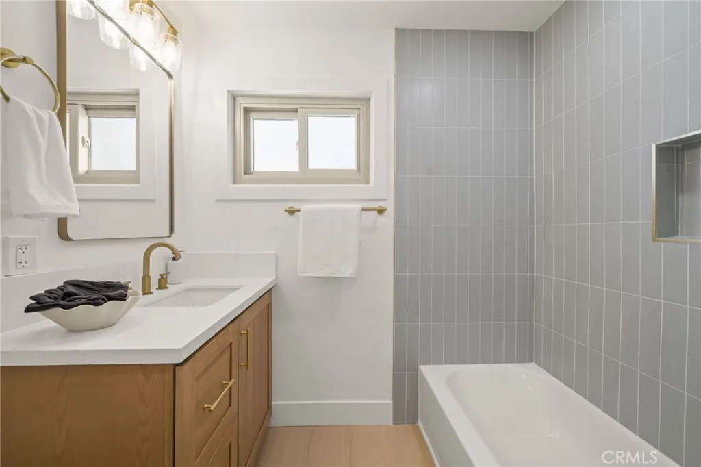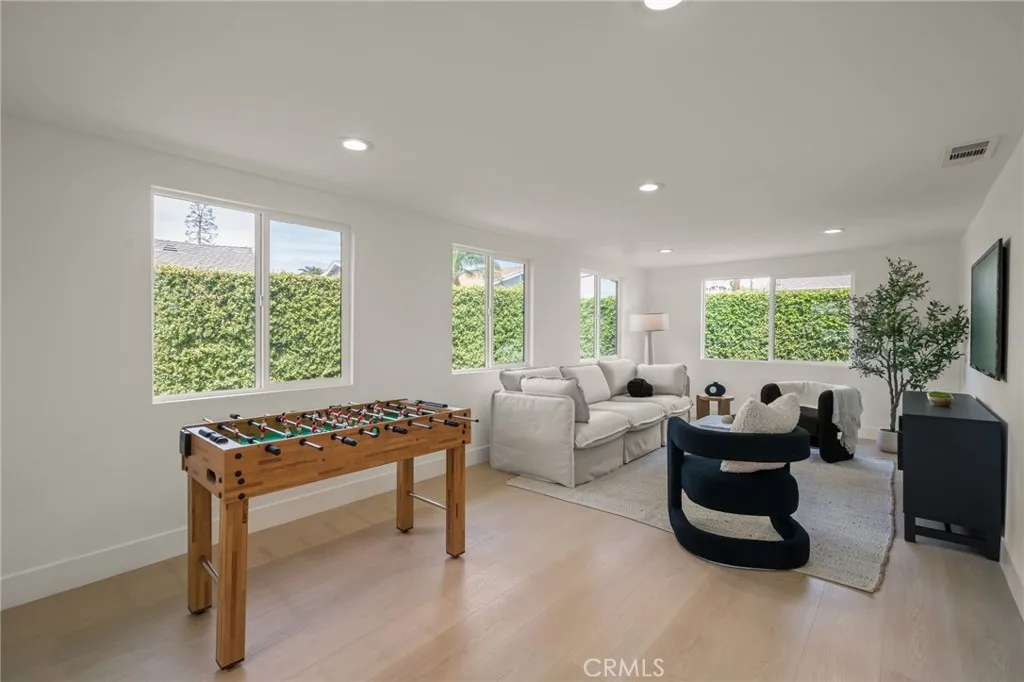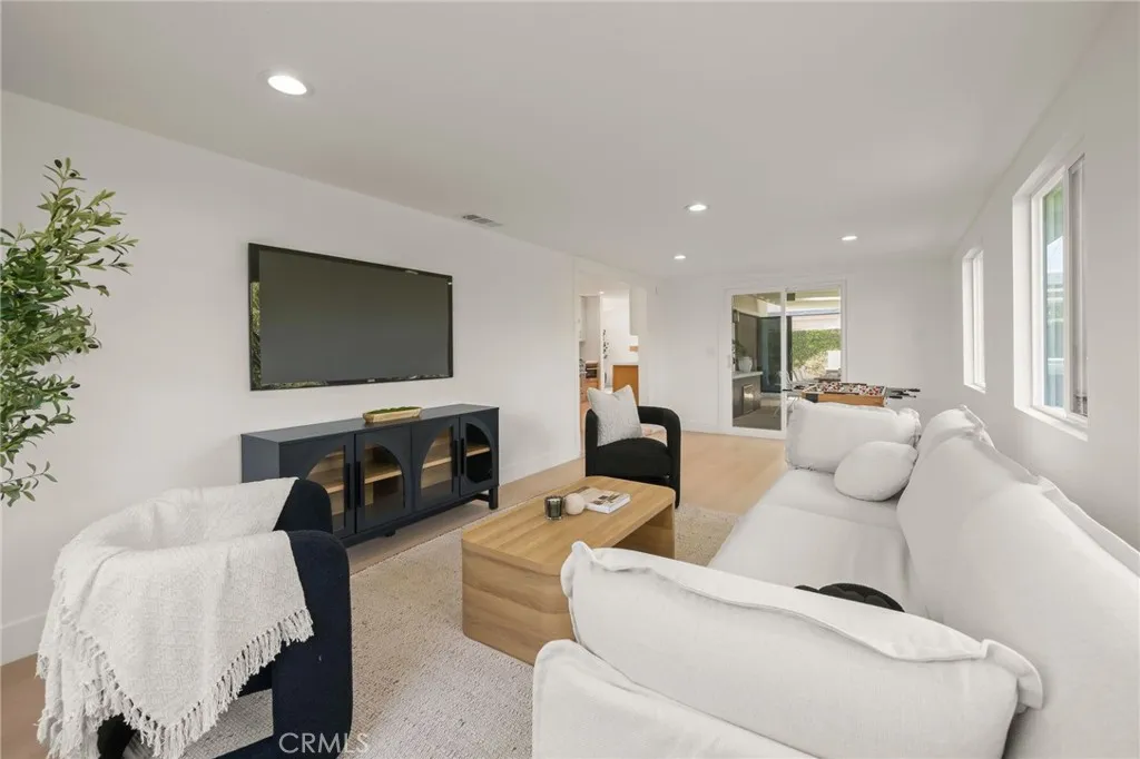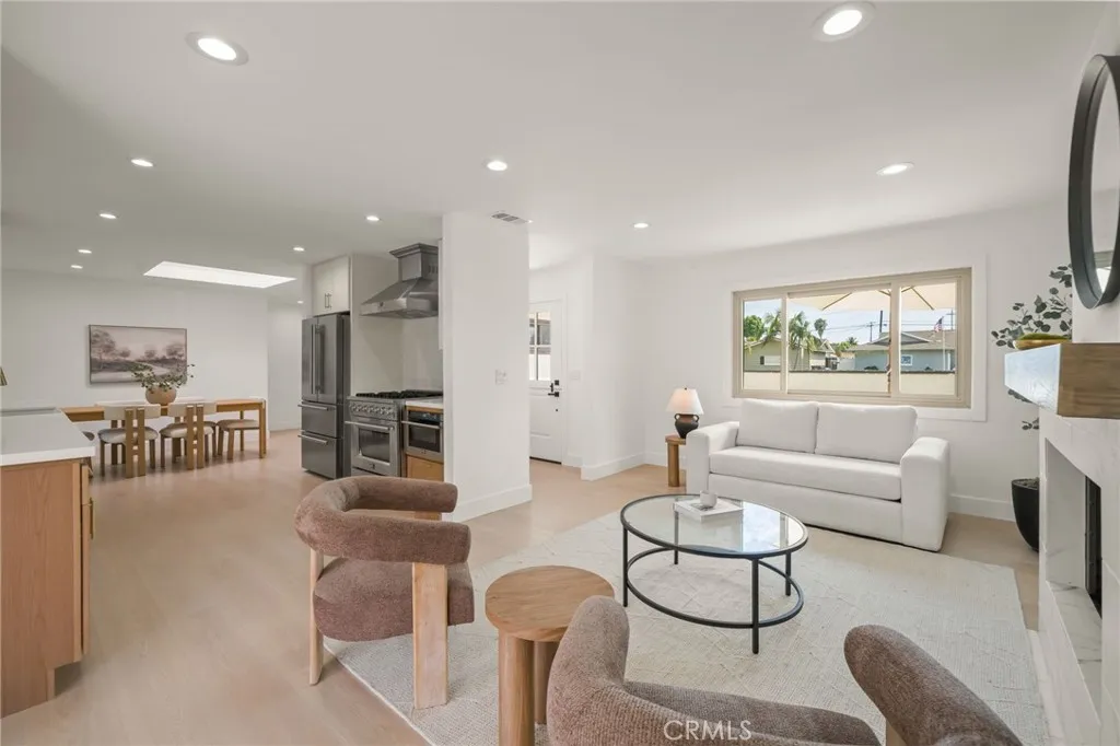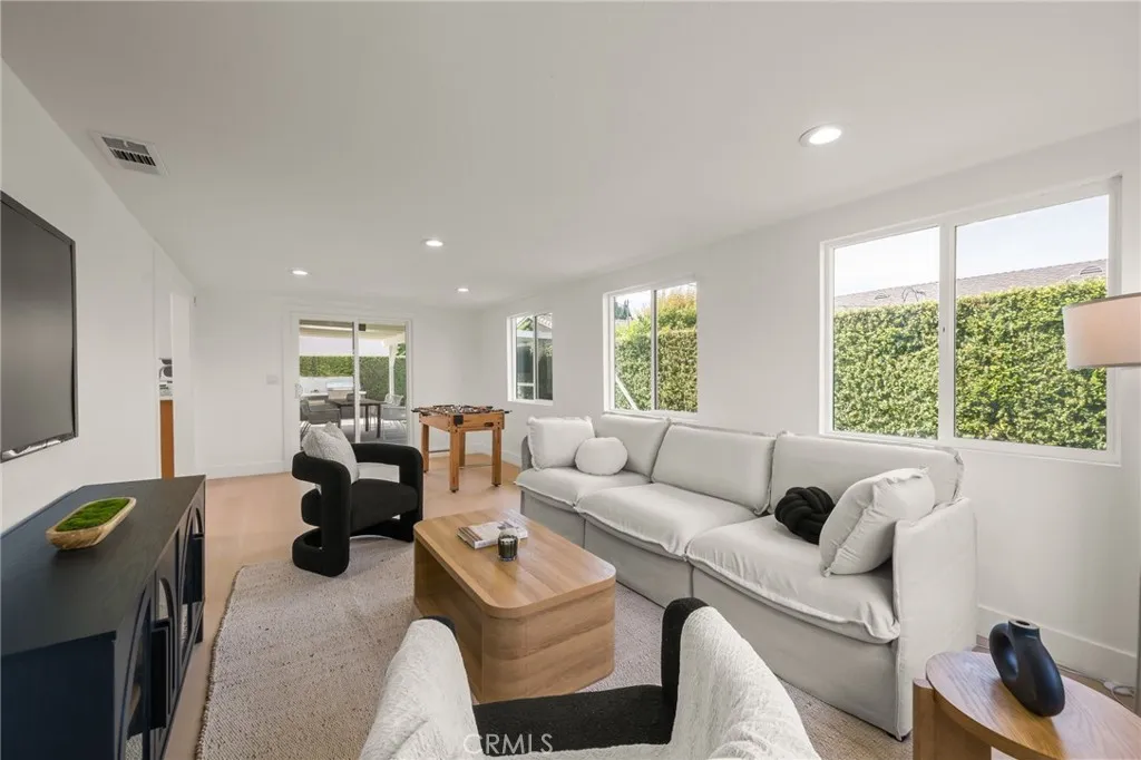 Welcome to this beautifully updated 1,531 sq ft, 3-bedroom, 2-bath home designed as a true indoor-outdoor retreat, where modern upgrades meet effortless California living. The heart of the home opens seamlessly to an exceptional backyard oasis through a stunning 8' California accordion door, creating a fluid connection between the formal living area, exterior space, and family room. The backyard is built for both relaxation and entertaining, featuring a covered patio, new sod, a new built-in BBQ grill, and a hot tub with a mounted TV—perfect for hosting or unwinding year-round. In addition to the backyard enhancements, the front patio has been upgraded with new landscaping and an aluminum gate extending the living area to the front exterior of the house, offering an enclosed space for your dog to roam or an area to plant your own vegetable and herb garden. Inside, the home is filled with natural light, enhanced by a skylight in the dining room and an open, airy layout. The modern kitchen showcases brand-new stainless steel appliances, stylish white oak lower cabinets and off-white uppers with brushed gold fixtures with brand new quartz countertops hand picked to tie together the homes aesthetic. Additional upgrades include new luxury vinyl plank flooring throughout, remodeled bathrooms, and a newly added, and fully permitted bonus/flex room that could be used as a family room, gym, kid play area, or even a future 4th bedroom. Other upgrades at the property include a new garage door and motor, upgraded electrical panel, new interior doors, Dutch-style front door, new electrical systems, and new landscaping. Every detail has been thoughtfully refreshed, from the interior finishes to the newly landscaped outdoor spaces, delivering a turnkey living experience with a strong emphasis on comfort, outdoor-indoor flow, and lifestyle. Ideally located in Huntington Beach, this home is walking distance to a highly regarded Montessori school and the weekly farmer's market at Goldenwest College. It's also in close proximity to a wide array of restaurants, boutiques, and everyday conveniences, with Bella Terra less than a mile away for premier shopping, dining, and entertainment. The beach is also a short drive away, offering the perfect balance of coastal proximity and refined residential living. This is an excellent opportunity to own a home that delivers luxury, privacy, and a seamless indoor-outdoor lifestyle in one of Huntington Beach’s most desirable areas.