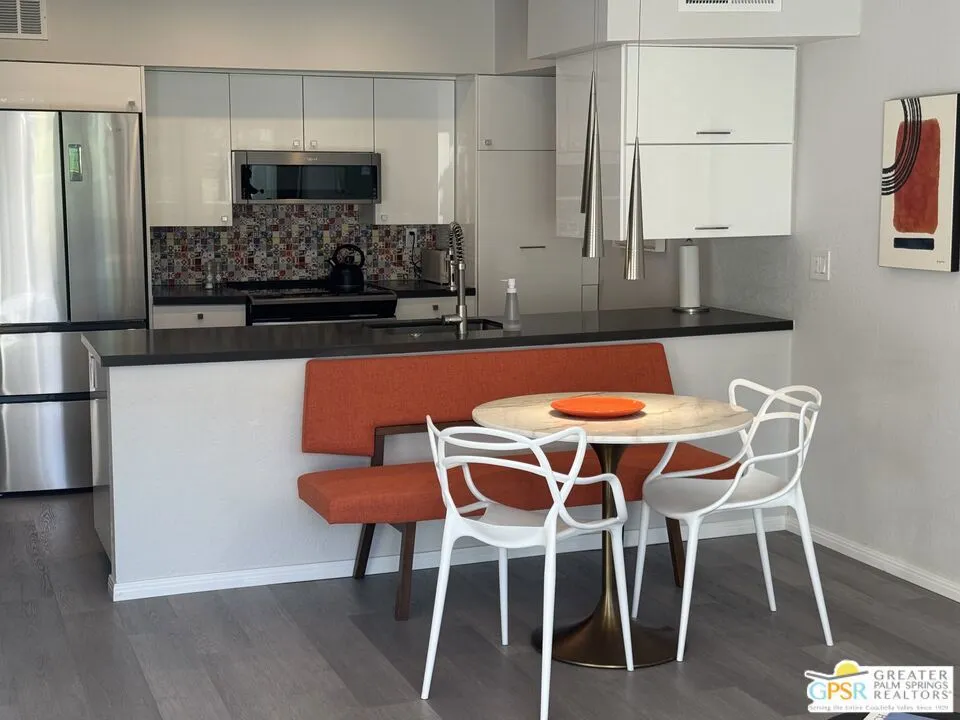 Turn-Key, Fully Furnished One-Bedroom Condo in Prime South Palm Springs. Welcome to Smoke Tree Racquet Club an iconic mid-century community designed by renowned architect Hugh Kaptur, perfectly situated in the heart of highly sought-after South Palm Springs. This completely renovated, west-facing upstairs one-bedroom, one-bath condo is turn-key and fully furnished right down to the linens making it ideal for a full-time residence, weekend escape, or investment opportunity. Step into a bright, open-concept living space featuring fresh finishes, stylish decor, new flooring, an upgraded kitchen with modern appliances, and a beautifully updated bathroom. The spacious bedroom offers generous closet space, and the private balcony captures stunning west-facing mountain views and spectacular sunsets. Enjoy resort-style living with a completely refreshed community pool, spa, tennis and pickleball courts, and lush, manicured grounds. Just steps away, walk to the popular Smoke Tree Plaza for shopping, restaurants, and everyday conveniences no need for a car. Move right in and start enjoying the Palm Springs lifestyle with ease and style this is mid-century living at its best. Don t miss out this is a rare turn-key offering in one of Palm Springs most desirable communities.