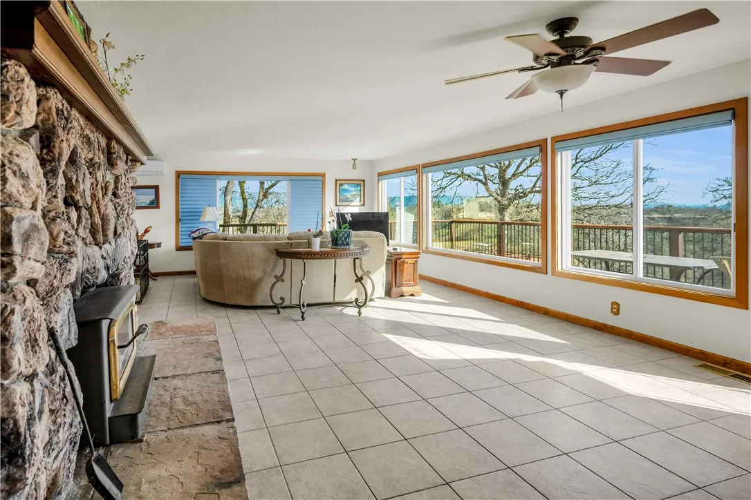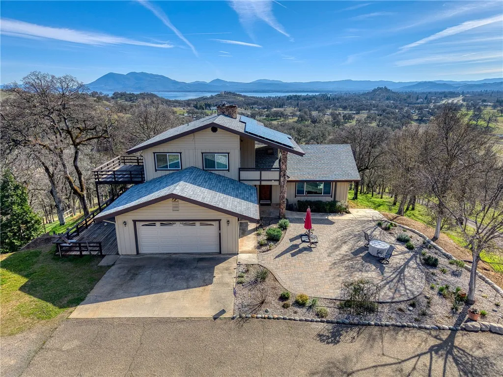 Perched high above the Lakeport Valley, this one-of-a-kind Northern California retreat captures sweeping, unobstructed views of Clear Lake and the surrounding countryside. Set on 18 private acres, the property blends timeless architecture, thoughtful upgrades, and serene outdoor living where wide-open skies and peaceful surroundings set the tone. The home welcomes you with a beautifully hardscaped courtyard-style patio, leading into a warm and inviting interior defined by vaulted wood-plank ceilings, exposed beams, and rich natural finishes throughout. A striking atrium-style interior planter with stone accents serves as a stunning architectural focal point, filling the home with natural light and a seamless connection to the outdoors. The residence has been fully updated and offers a versatile floor plan with a downstairs bedroom and bath, plus three additional bedrooms and two bathrooms upstairs. A radiant-heated main floor provides a cozy living space and is enhanced by wood stoves, while the upstairs primary suite features a wood-burning fireplace, creating a peaceful sanctuary with views stretching across the valley and lake. Step outside onto the Trex wrap-around decking or unwind on the hot tub deck overlooking Clear Lake, offering a true front-row seat to unforgettable sunsets and star-filled nights. Notable upgrades include a new roof, owned solar, and a private well, delivering comfort, efficiency, and peace of mind. The property is complete with a large attached two-car garage, shop/barn, multiple outdoor patio areas, and established garden beds, offering space to live, create, and explore. This is more than a home it's a lifestyle of privacy, craftsmanship, and connection to nature, with some of the most breathtaking views Lake County has to offer.