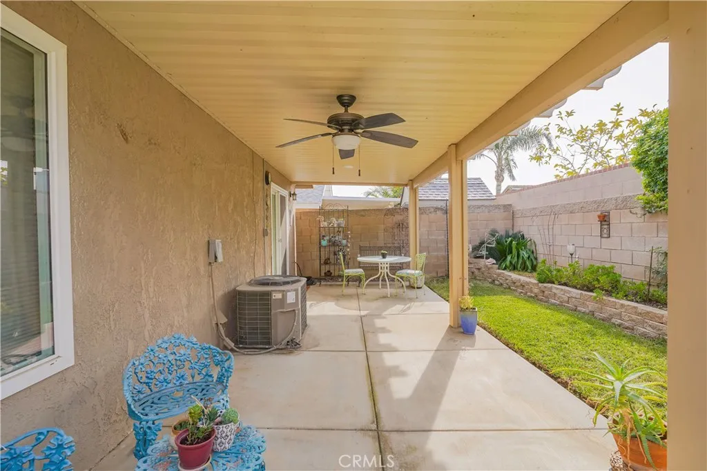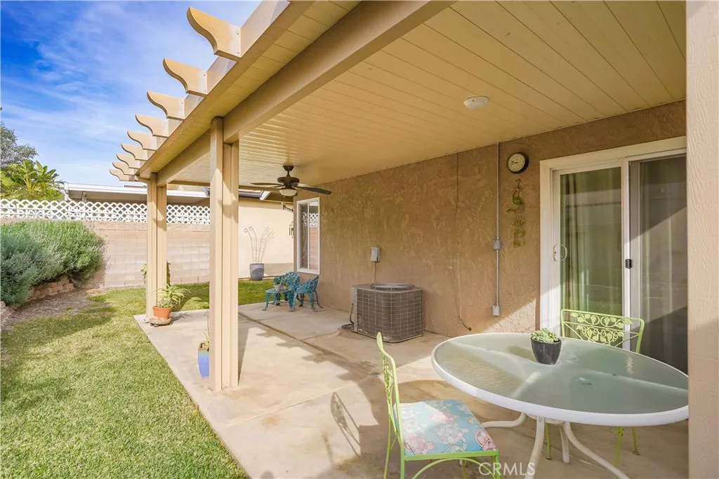 Welcome to our inviting and well-maintained 3 bedroom 2 bath home tucked within a quiet Jurupa Valley community. From the moment you arrive, the charming covered entry and double-door front entrance set the tone for warmth and functionality. Inside, the home features a light and open layout with attractive flooring that flows through the main living areas, creating a seamless and welcoming feel. The hallway opens into a comfortable living space ideal for everyday living and entertaining alike. Step outside to discover a thoughtfully designed backyard retreat. The covered patio offers a perfect extension of the living space, complete with ceiling fans for year-round comfort. Whether enjoying morning coffee or hosting evening gatherings, this outdoor area is both private and versatile. The landscaped yard includes a combination of green lawn, planters, and decorative pathways, providing charm with low-maintenance appeal. Attached 2 car garage . Additional highlights include sliding glass doors for indoor-outdoor living, ample patio space for seating or dining, and a fenced yard that enhances privacy and usability. Conveniently located near parks, shopping, dining, and commuter routes, this home offers a wonderful balance of comfort, functionality, and location. A must-see opportunity to own a well-cared-for home in Jurupa Valley. SOLAR is being negotiated with SUNRUN