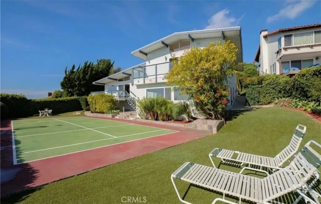 This stunning 3-bedroom, 3-bathroom retreat has been designed for both everyday comfort and effortless entertaining and features spectacular ocean views with beautiful hardwood floors throughout. The formal living room, dining area, and family room flow seamlessly together, creating an inviting, light-filled space. The remodeled kitchen features stainless steel appliances and opens directly to the family room where sliding glass doors lead to a large balcony—perfect for morning coffee or viewing the sunset while soaking in the spectacular ocean vistas. The luxurious owner’s suite offers its own ocean views, a walk-in closet, and a spa-like bathroom with dual sinks and a relaxing soaking tub. Two additional guest bedrooms provide comfort and privacy for family or friends. The home also features a separate guest unit with its own entrance as well as a full bathroom and refrigerator, making it ideal as a bonus room, media lounge, home office, workout studio, or private guest retreat. The backyard is an entertainer’s dream, complete with a pickleball court and ample space for hosting unforgettable gatherings. This is coastal living at its finest—where style, comfort, and ocean views come together effortlessly.