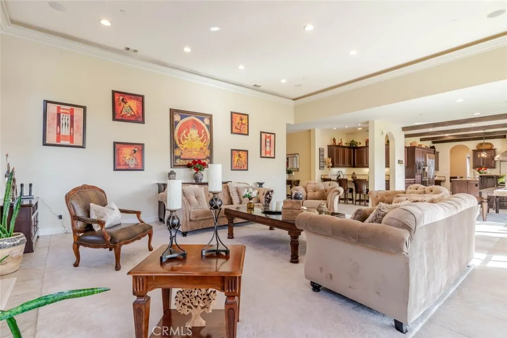 Experience luxury living at its finest in this expansive gated community estate with a detached guest house, perched on a scenic hilltop in the highly desirable Shadow Hills community. Located at 10817 West Stallion Ranch Road, this remarkable two-story residence offers 5 bedrooms, 6 bathrooms, and approximately 6,000 sq ft of refined living space, plus a fully equipped guest house with its own kitchen—ideal for extended family, guests, or a private workspace. The main home welcomes you with a grand foyer featuring crown molding, elegant chandeliers, and recessed lighting throughout. Multiple living areas include a formal living room, dining room, and a spacious family room with a fireplace, creating ideal spaces for both everyday living and entertaining. The gourmet kitchen is appointed with stainless steel appliances, granite countertops, and ample cabinetry, while a wet bar adds an extra touch of sophistication. Spa-inspired bathrooms showcase high-end finishes, including a fireplace in the primary bathroom for ultimate relaxation. Additional highlights include a designated office area, laundry room, walk-in closets, and a mix of wood-tone flooring, tile, and carpet throughout. One of the three attached garage spaces has been thoughtfully converted into a private gym with wood flooring and mirrored walls. Solar panels add efficiency and long-term value. Outside you'll find striking black iron double doors to a true backyard oasis. The expansive outdoor living space features a covered built-in patio with ceiling fans, lush green lawn, paved entertaining areas, a fire pit, gazebo seating area, and a sparkling pool with hot tub—all perfectly positioned to capture breathtaking mountain and sunset views. As the day fades, enjoy nights full of stars and absolute silence, creating a rare sense of peace and privacy that feels worlds away from the city. This rare lease opportunity combines luxury, privacy, gated security, spectacular sunset views, and serene starlit nights in one exceptional Shadow Hills property.