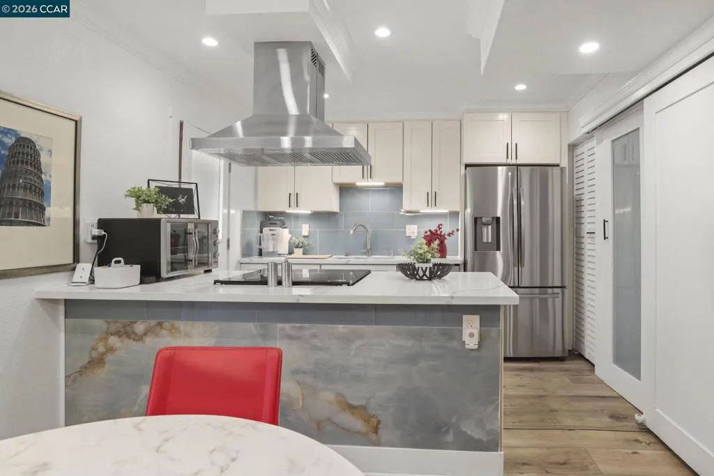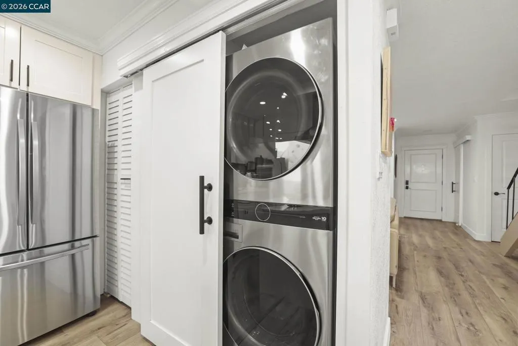 $30K Price Reduction! This updated end-unit townhome in the desirable Sunset Park community offers privacy, style, and an ideal location—perfect as a primary residence or investment. Tucked at the back of the complex, it features 2 spacious bedrooms, 2 private patios, and a balcony off the primary suite for easy indoor-outdoor living. The home showcases laminate flooring, crown molding, recessed lighting, new patio sliders, and a custom color-changing fireplace. The kitchen includes quartz countertops and a pantry, as well as a full-size indoor laundry closet conveniently hidden behind a darling barn door. Enjoy community amenities like a pool, clubhouse, tennis courts, and walking paths, all just minutes from the Iron Horse Trail, Heather Farms Park, Diablo Hills Golf Course, downtown Walnut Creek, shopping, dining, BART, and John Muir Hospital. Move-in ready and not to be missed!