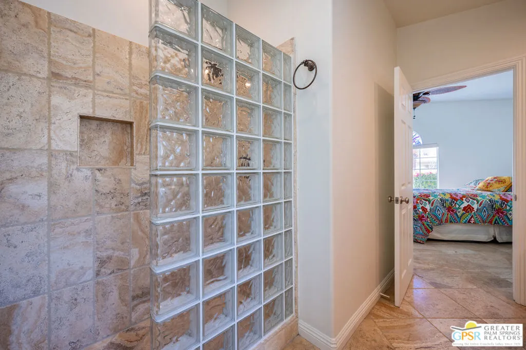 Luxury living with breathtaking golf course and mountain views from this exquisite single-story custom home, nestled on a serene cul-de-sac in the prestigious Jasmine Homes community of South Palm Springs in gated community. Situated on FEE LAND, this stunning 3-bedroom, 3-bathroom residence, complete with an office/den with sky light, exudes elegance at every turn. Step inside to discover soaring high ceilings, elegant tile flooring throughout, and a spacious formal dining area. The expansive living room, framed by a gas fireplace, opens to spectacular views of the golf course. The gourmet kitchen is a culinary masterpiece, featuring top-of-the-line stainless steel appliances, pristine tile floors, and gleaming granite countertops. Adjacent to the kitchen, a private covered patio offers sweeping mountain views and easy access to the sparkling pool and spa, providing an ideal space for relaxation and entertainment. The generously sized primary suite boasts a private retreat with a sliding door that opens to its own tranquil patio. Indulge in the luxurious en-suite bath, featuring walk-in closets, elegant tile flooring, and granite countertops. Bedroom 2 offers ample space and tile flooring, while the guest bath is conveniently located in the hallway. The third bedroom is spacious, complete with abundant closet space, dual sinks, and a walk-in shower. An additional room, perfect as an office, den, or optional 4th bedroom, features natural light from a skylight and double doors for a seamless connection to the rest of the home. The home is further complemented by a dedicated laundry room with extensive cabinetry and a two-car attached garage. The exterior of the home is designed for both relaxation and entertaining, with a refreshing pool featuring mountain views, a mister system for ultimate comfort, and plenty of space for hosting gatherings or enjoying peaceful solitude in this pet-friendly paradise. Close to downtown restaurants & shopping, Starbucks, Agua Caliente Casino, Palm Springs Art Museum, hiking trails and much more. very easy to show contact agent!