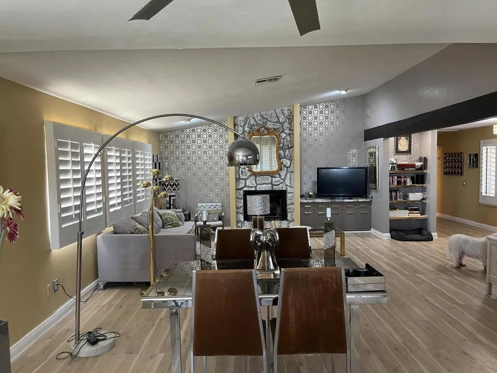 Located in the Country Club Estates development of the High Desert , recently renovated , close to town and transportation , yet private ,this stylish 3 bed 2 bath 1900 sq. feet house has an open floorplan and some recent upgrades in the kitchen, bathrooms and living room areas. The house is very close to town and just a few miles to Spaghetti Western and Pappy and Harrietts and a quick drive downhill to Palm Springs, casinos, art and restaurant scene, airport and I-10, although you do not need to go there for great food and live music nowadays.Joshua Tree National Park is a few miles up the road too.