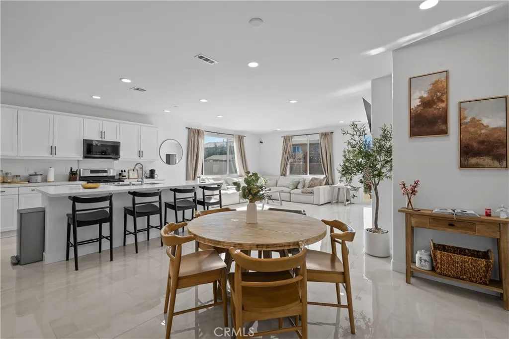 Charming single-story home with a thoughtfully designed open-layout. An interior with natural light creating an inviting atmosphere across all spaces. The heart of this home features a huge kitchen island, dining, and family room ideal to gather and entertain. The functional floor plan provides comfortable living areas with plenty of room to work from home or accommodate guests. Spacious three bedrooms and two full bathrooms, the master bedroom a place to relax with a shower, dual sinks and walk-in closet. The second bathroom includes a shower and tub, tile flooring flows throughout the home, office, high ceilings, central a/c, recessed lights, solar panels to improve energy efficiency, two car garage and driveway. Step into the back yard ready for your personal landscaping vision-perfect design. A perfect blend of versatility and space in a desirable Lancaster location.