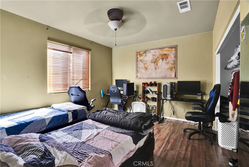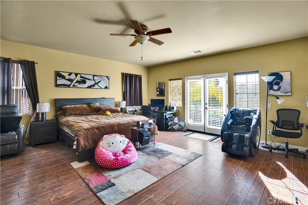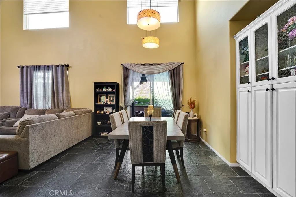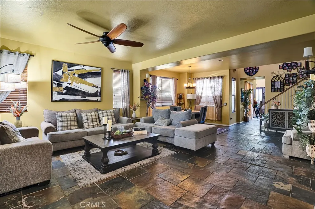 Price Improvement — exceptional value for the space, setting, and amenities. This spacious 5-bedroom, 3-bath home offers a flexible floor plan, generous square footage, and beautiful mountain views, all tucked away on a quiet cul-de-sac in a well-maintained community. The open layout features soaring ceilings and seamless flow between the kitchen, family room, living room, and dining areas—ideal for both everyday living and entertaining. The chef’s kitchen is complete with a large center island, ample cabinetry, and abundant workspace. Upstairs, the oversized primary suite opens to a private balcony with scenic mountain views. A large loft provides the perfect space for a home office, playroom, or media room. A downstairs bedroom and full bath add flexibility for guests or multi-generational living. Outdoor living truly shines with a built-in grill, fire pit, stone pavers, and multiple seating areas—perfect for gatherings or relaxing evenings at home. Additional highlights include excellent curb appeal, a wide driveway, low HOA, and no Mello-Roos. Residents enjoy access to resort-style amenities including a pool, spa, parks, playgrounds, and walking trails. A fantastic opportunity for buyers seeking space, comfort, and long-term value in a peaceful setting.