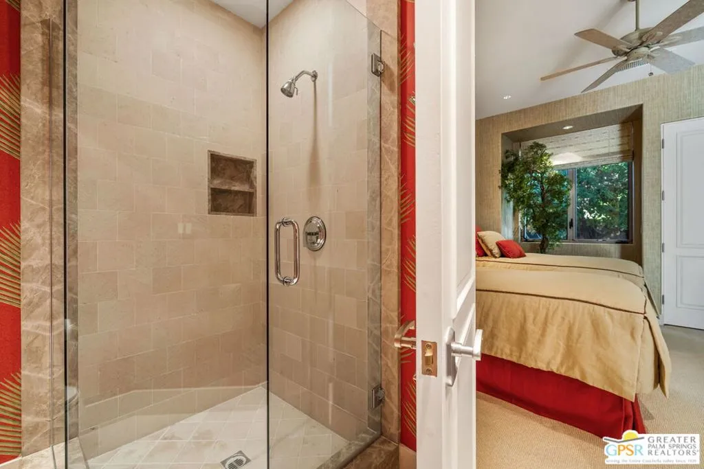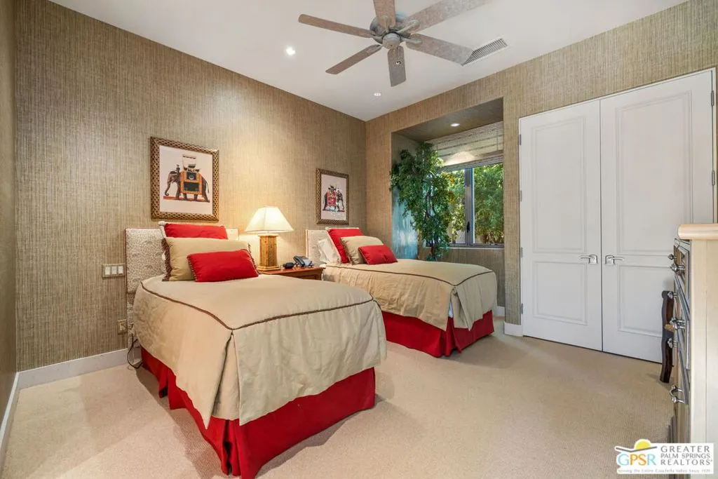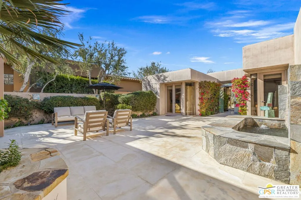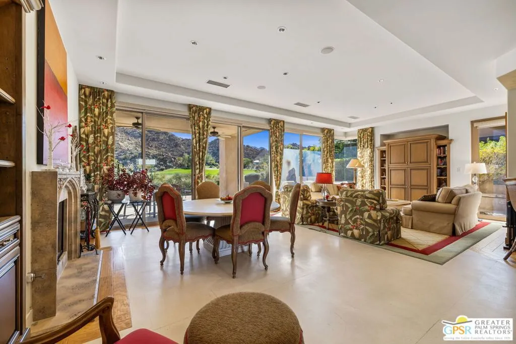 Set within the Indian Wells enclave of The Reserve Club, this desert contemporary residence overlooks the 15th fairway and captures sweeping south-facing mountain views from a setting prized for privacy, architecture, and natural beauty. Offering a highly flexible layout with multiple ensuite accommodations, this home is ideally suited for entertaining, hosting guests, or multi-generational living. Arrival is through a dramatic front courtyard framed by a private water fountain and gas fireplace - an inviting outdoor living space that also serves as the organizational heart of the home. Several of the private suites connect directly or indirectly to this courtyard, creating a true resort-style, casita-inspired experience. Inside the main residence, a rotunda entry opens to expansive living spaces with tall ceilings and floor-to-ceiling glass that frame pool, fairway, and mountain views. The formal living room features a gas fireplace, custom built-ins, and an adjacent wet bar, while a separate south-facing family room offers equally impressive views and its own fireplace. The gourmet kitchen is centrally positioned with generous island and breakfast bar seating, and provides convenient access to a built-in barbecue just outside - ideal for seamless indoor/outdoor entertaining. The Primary Ensuite is privately located and offers tall ceilings, wood flooring, and a well-appointed bath with dual private sinks, soaking tub, walk-in shower, and a generous custom walk-in closet. Junior Ensuite Two includes a private bath and opens directly to the courtyard. Junior Ensuite Three also features its own bath and enjoys courtyard access via a nearby hallway. Junior Ensuite Four is a standout casita-style suite with a separate exterior entrance and private bath perfect for guests seeking maximum privacy. The Den with private bath, direct access to the golf cart garage, and courtyard entry offers additional flexibility and can easily function as a fifth ensuite bedroom if desired. The south-facing backyard is a private retreat with a pool, elevated in-ground spa, gas firepit, and dramatic mountain backdrop - perfectly oriented for all-day sun and sunset views. Located in Indian Wells and just moments from the private clubhouse, life at The Reserve Club includes world-class golf, dining, fitness and wellness facilities, tennis and pickleball, and miles of scenic trails - all within a community defined by privacy, elegance, and a true sense of place. A bold architectural offering with exceptional flexibility, views, and value ready for its next chapter.