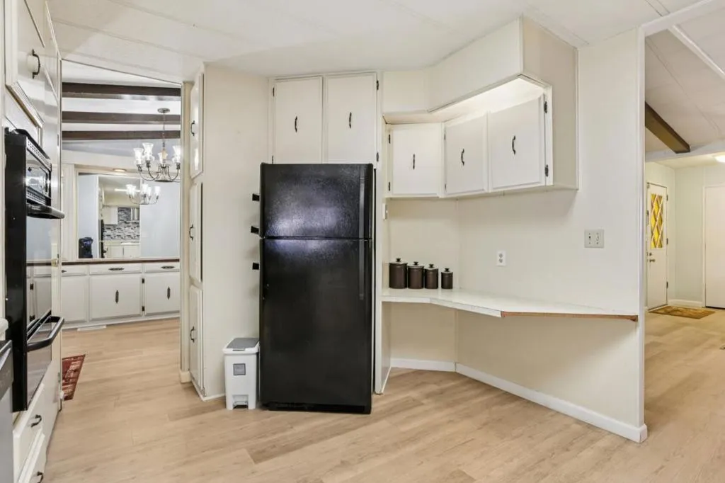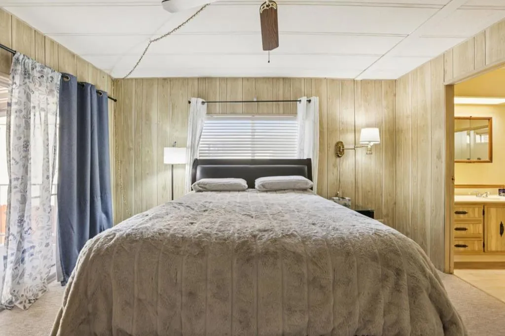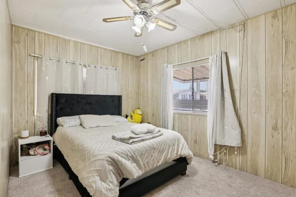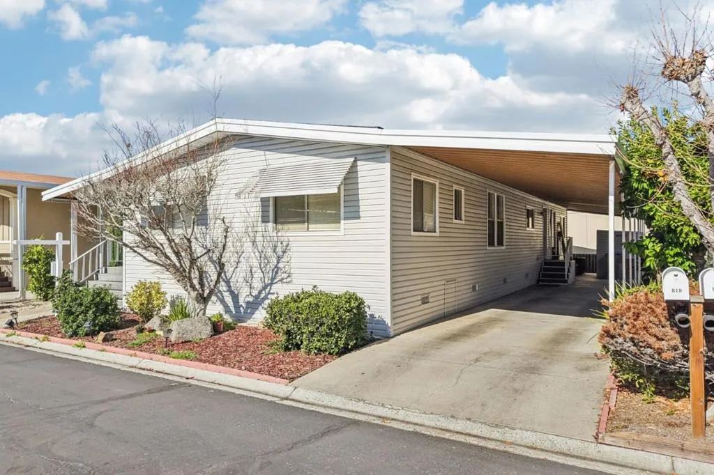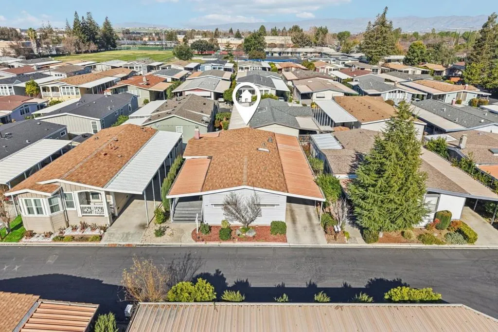 Great value for this spacious triple-wide manufactured home! 3 bedrooms, 2 bathrooms & 1780 sqft. Central air conditioning. Separate family room with a fireplace. The living room features vaulted ceilings with a dining area that includes a built-in hutch. Separate laundry room with washer and dryer. Primary suite includes a walk-in closet with a private deck. The bathroom has dual vanities with ample storage. New paint, new interior carpet, new hardwood flooring in the bathrooms, kitchen, dining room, and living room. Welcome home to Villa Teresa MHP, one of the premiere senior communities in the South Bay. Attached front deck with a view of the hills. Carport parking for at least 2 cars plus a shed for storage. San Jose City Rent Control $1632 per month. One buyer must be at least 55 yrs old; all occupants must be at least 18 yrs old. Villa Teresa is a senior community with multiple amenities including pool, spa, clubhouse with billiards and table tennis, Bocce ball, and DOG PARK. Great park management!
