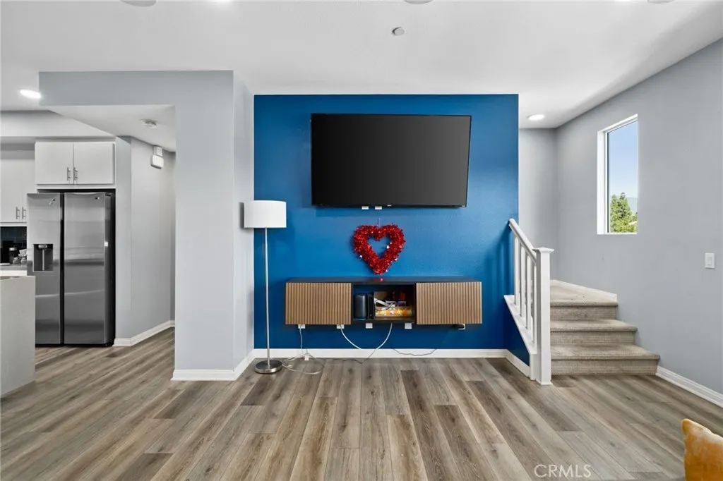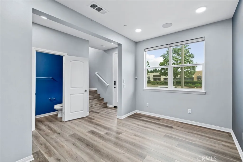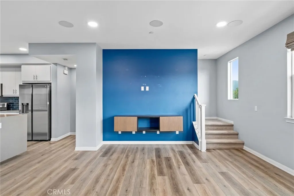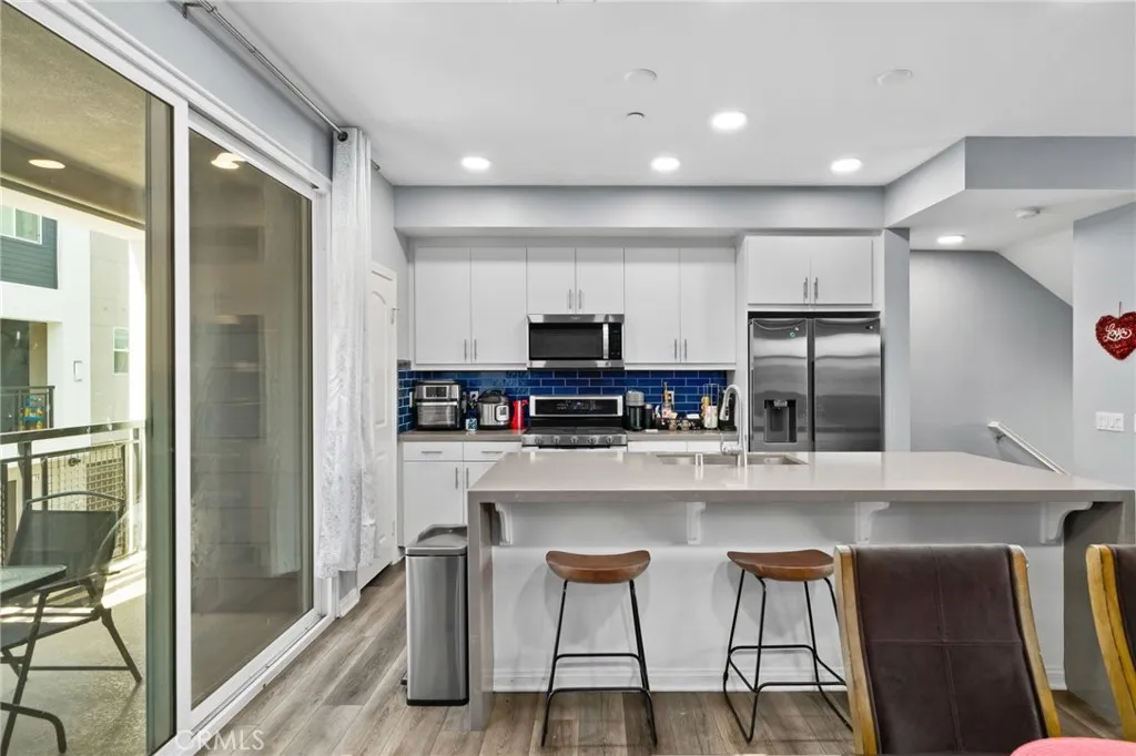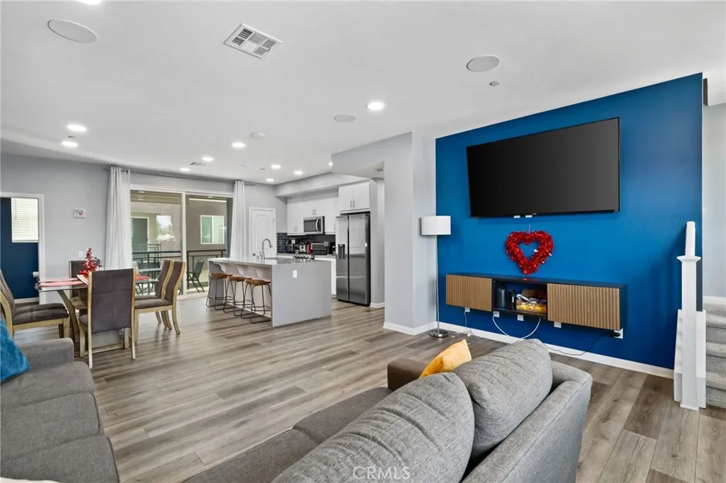 Welcome to this stylish three-level condo offering 3 bedrooms and 3 bathrooms with a thoughtfully designed layout perfect for modern living. On the entry level, you’ll find a versatile office or den, ideal for working from home or a private retreat, along with a convenient powder bath and access to the two-car garage located at the rear. The second level is the heart of the home, featuring a bright open-concept floor plan with a spacious family room, dining area, and a stunning kitchen. The kitchen showcases a waterfall-edge island, ample cabinetry, pantry and and seamless flow for entertaining. Sliding glass doors lead to a private balcony—perfect for morning coffee or evening relaxation. An additional powder bath on this level adds extra convenience. Upstairs, the third level offers a relaxing primary suite complete with a walk-in closet and a spa-like primary bathroom featuring dual sinks and a walk-in shower. Two additional bedrooms share a full bathroom, and a laundry closet with space for a stackable washer and dryer is conveniently located on this floor. Residents enjoy fantastic community amenities, including a swimming pool, hot tub, clubhouse, BBQ and picnic areas and a fitness center. Ideally located near Target, Victoria Gardens, and with easy access to the 210 and 15 freeways, this home blends comfort, style, and convenience in one exceptional package.