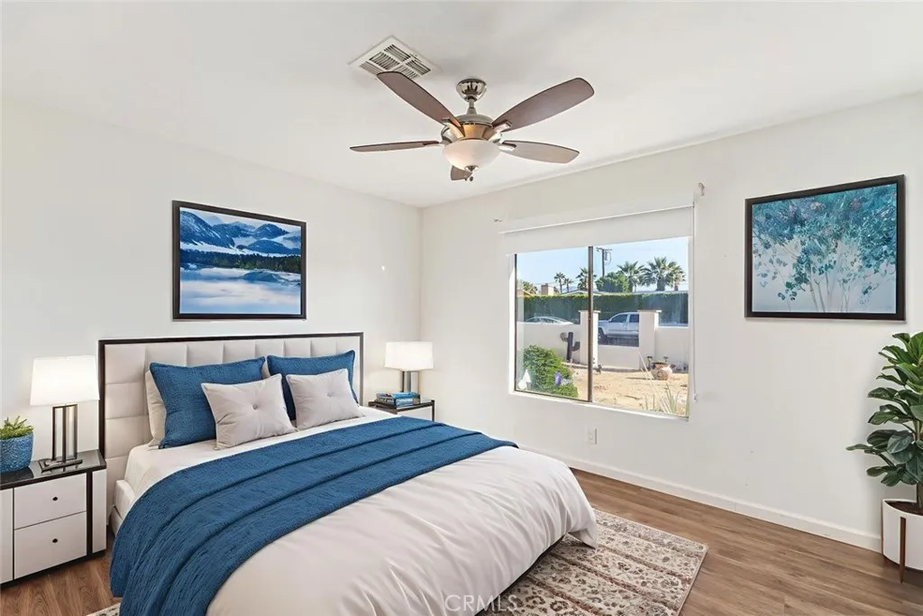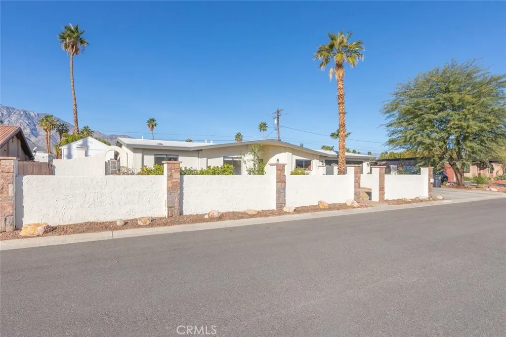 Welcome home to this spacious four-bedroom desert modern ranch, originally built in 1978 and thoughtfully improved for today’s living. This one-of-a-kind single story is perfect for a family who loves to entertain and build memories! The home offers both privacy, comfort and even RV parking! Enter through double doors into an open floor plan where the living and dining areas connect easily to a large kitchen with plenty of cabinet and counter space. The nearby family/game room includes a gas fireplace, bar area, and convenient access to the laundry room and oversized two-car garage with overhead storage. Sliding glass doors from the living room and game room offer easy access to the backyard. The flagstone patio was carefully installed stone by stone and includes covered areas, making it easy to enjoy year-round. The pool and spa are just steps from the house, along with a natural-gas BBQ island and firepit perfect from family entertainment. Additional features include owned solar installed in 2023, no HOA, and a .23-acre fee simple lot where you own the land. Located in the Gene Autry neighborhood, this home is close to downtown Palm Springs and offers easy access to main roads and the I-10 freeway.
