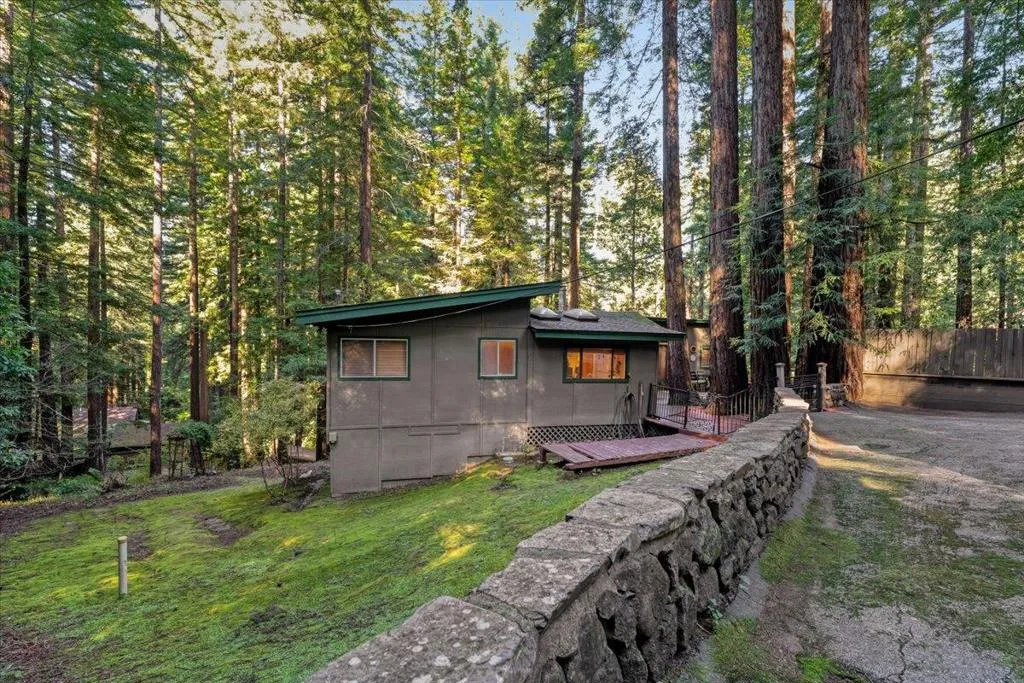 This sweet home is bursting with mountain charm! Tucked within the desirable residential community of Forest Lakes, this thoughtfully constructed two-bedroom, two-bathroom home is surrounded by majestic redwood trees and located near a private, seasonal recreational pool. The home features pine wood flooring, two well-appointed bedrooms each with en suite bathrooms, and a private deck off the primary bedroom. An office nook off the living room provides flexible workspace, while a functional wood-burning stove adds warmth and ambiance to the living area. The seller would like to sell fully furnished!