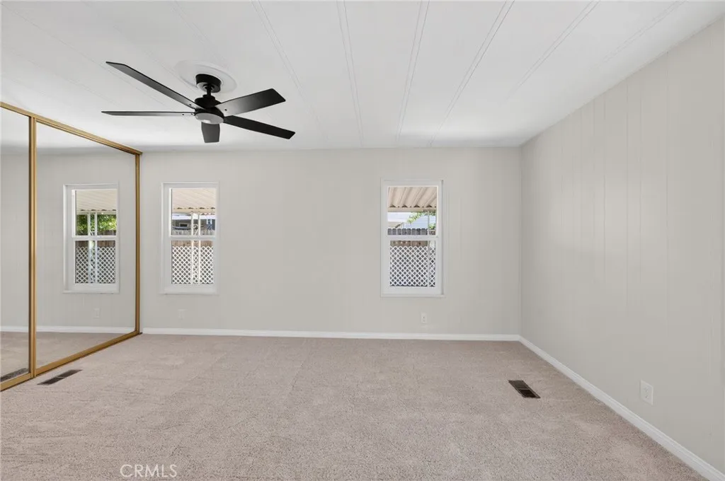 FHA Offers can be accepted after March 8th, All other financing welcome now. This beautifully updated 2026 home is located in the desirable Monte Vista Estates East 55+ community. Featuring 2 bedrooms, 2 bathrooms, and a 2-car garage, this home blends comfort, efficiency, and style in a peaceful setting. Enjoy brand-new energy-efficient windows and luxury vinyl plank flooring throughout. The upgraded kitchen showcases quartz countertops, custom cabinetry, stainless steel appliances, a dishwasher, and a gas range with ventilation hood, all designed with an open, modern layout. The home offers a formal living room, dining area, and spacious family room, providing plenty of space for relaxing or entertaining. Two large covered patios spanning the length of the home create exceptional shaded outdoor living space. The fully landscaped yard features a mix of low-maintenance plants and concrete hardscaping, plus a storage shed and several mature citrus trees in the backyard. This may be one of the nicest homes in the community. Schedule your tour today and explore the floor plan and 3D walkthrough for a complete virtual experience.